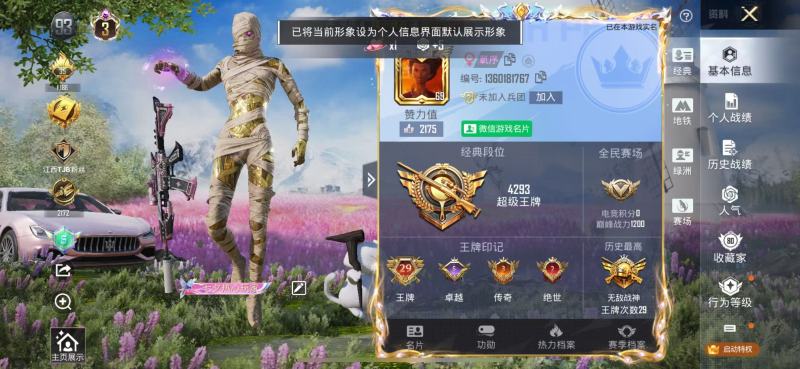 a4002/安卓v/-8王牌印记-3粉装-3特效枪-0载具-44289热力值-111套装-133枪