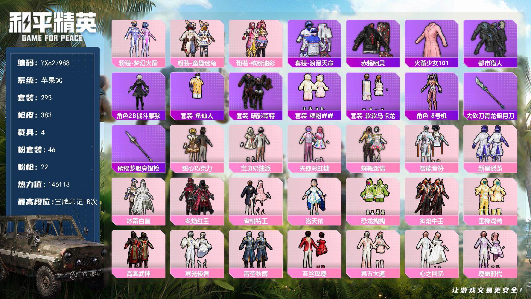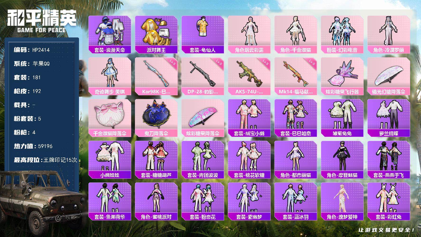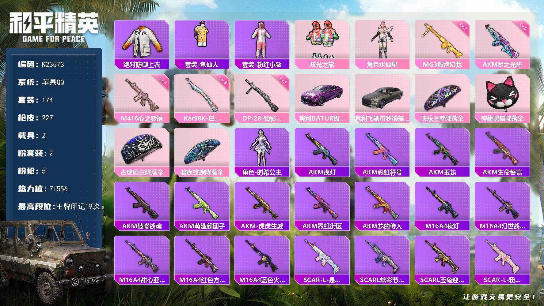 hs63670苹果手Q-17王牌印记-4粉装-6特效枪-2载具-73374热力值-178套装-224