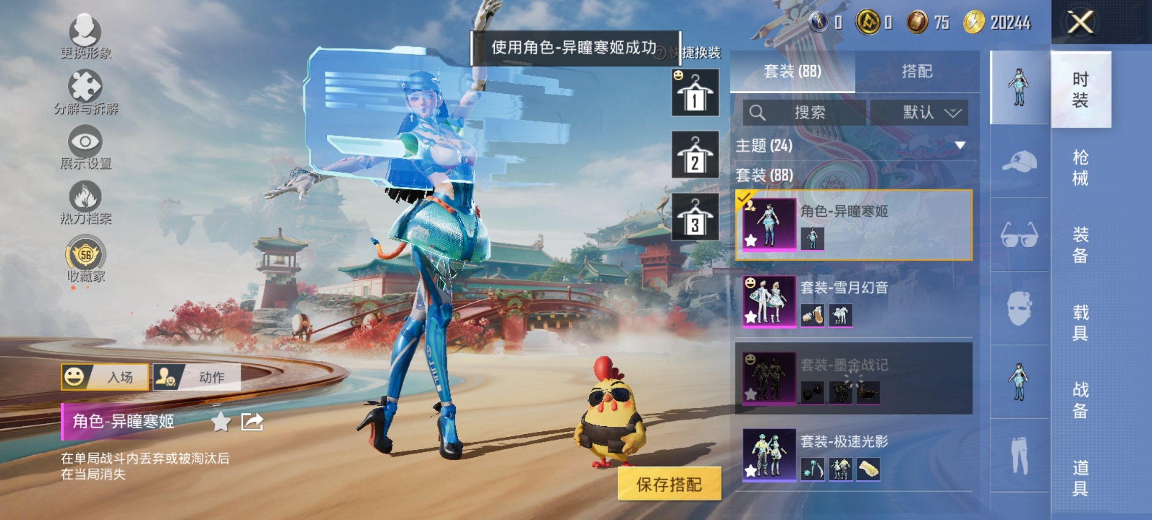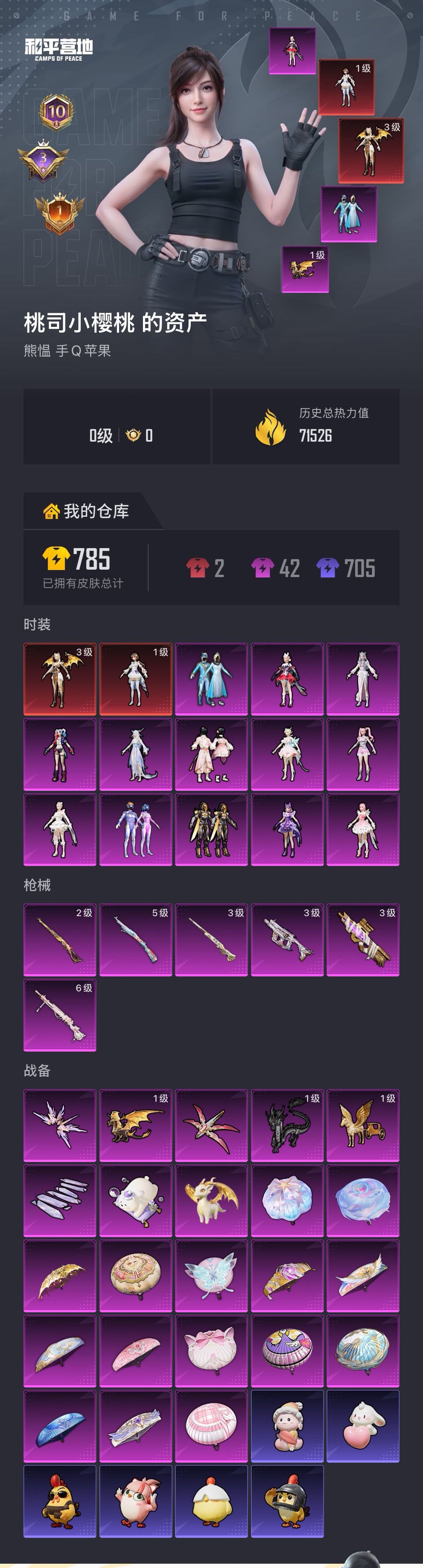 苹果 手Q-2神装-9粉装-6特效枪-9载具-6粉色飞行器-76644热力值-9