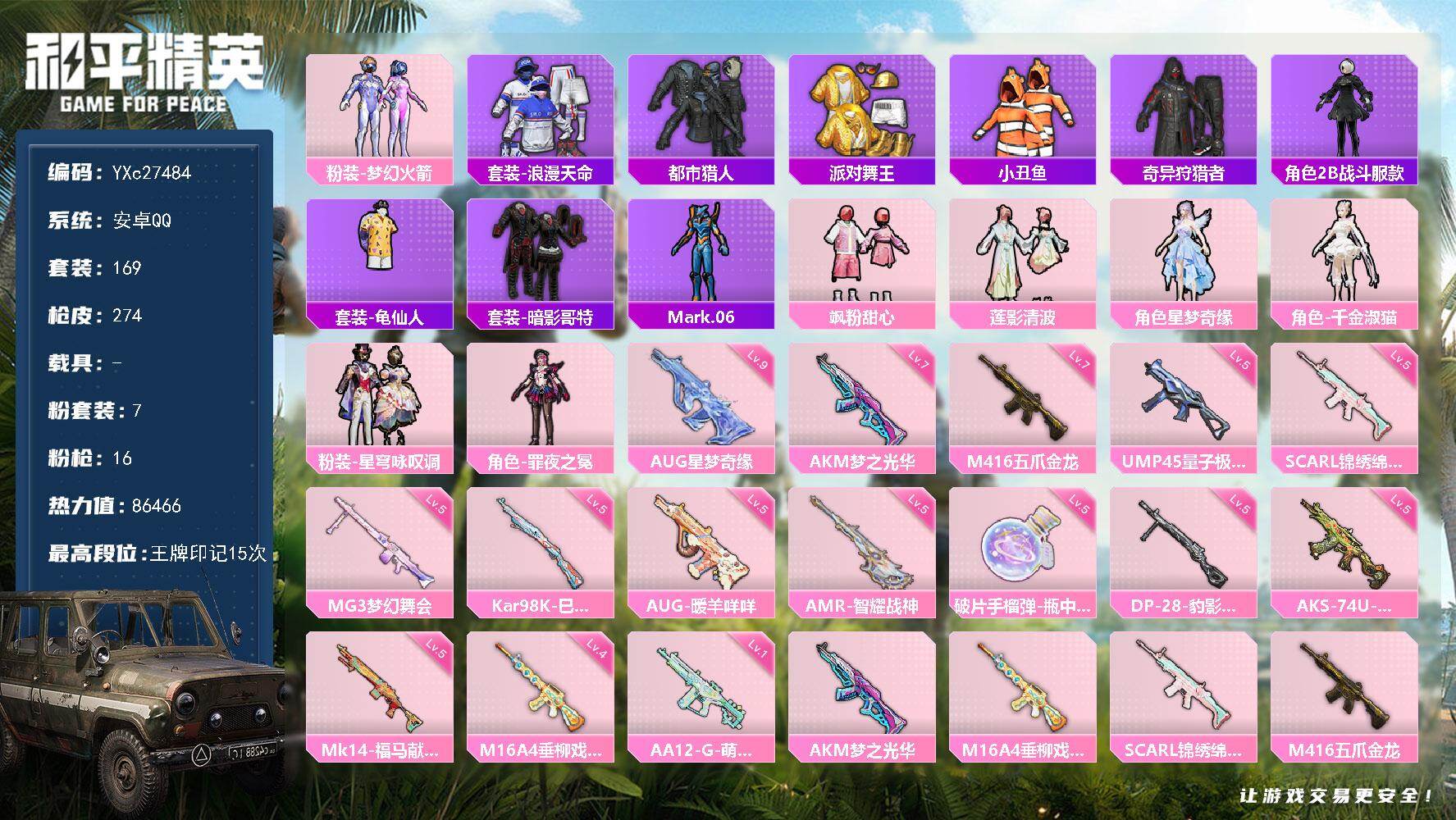 【12粉装13特效枪2载具】 安卓V区-80082热力值-14印记-191套装-