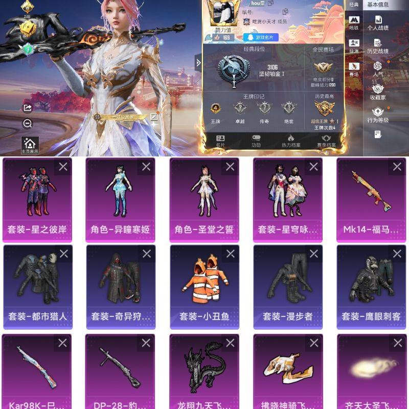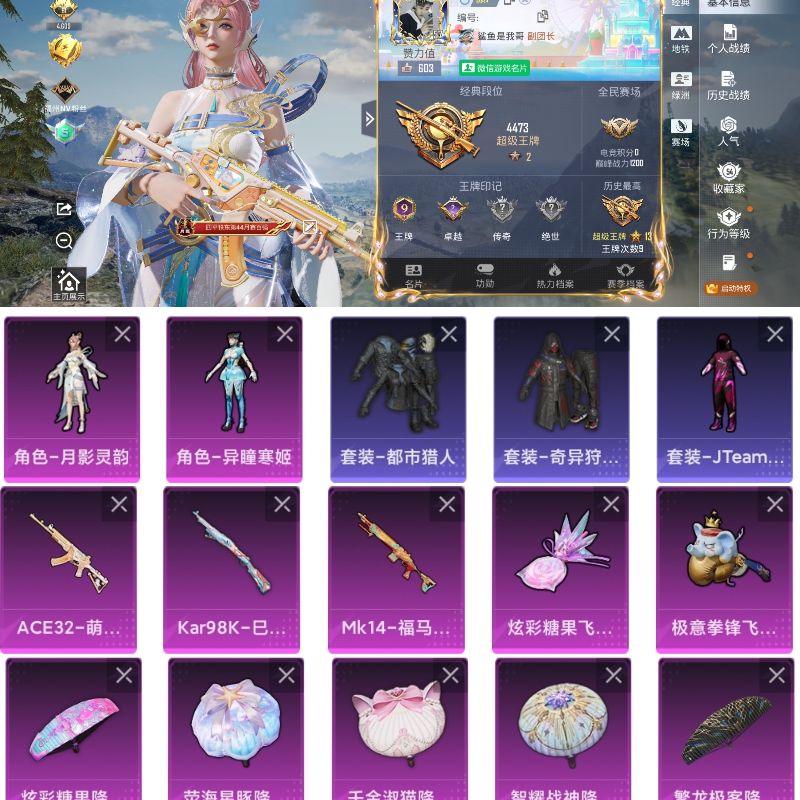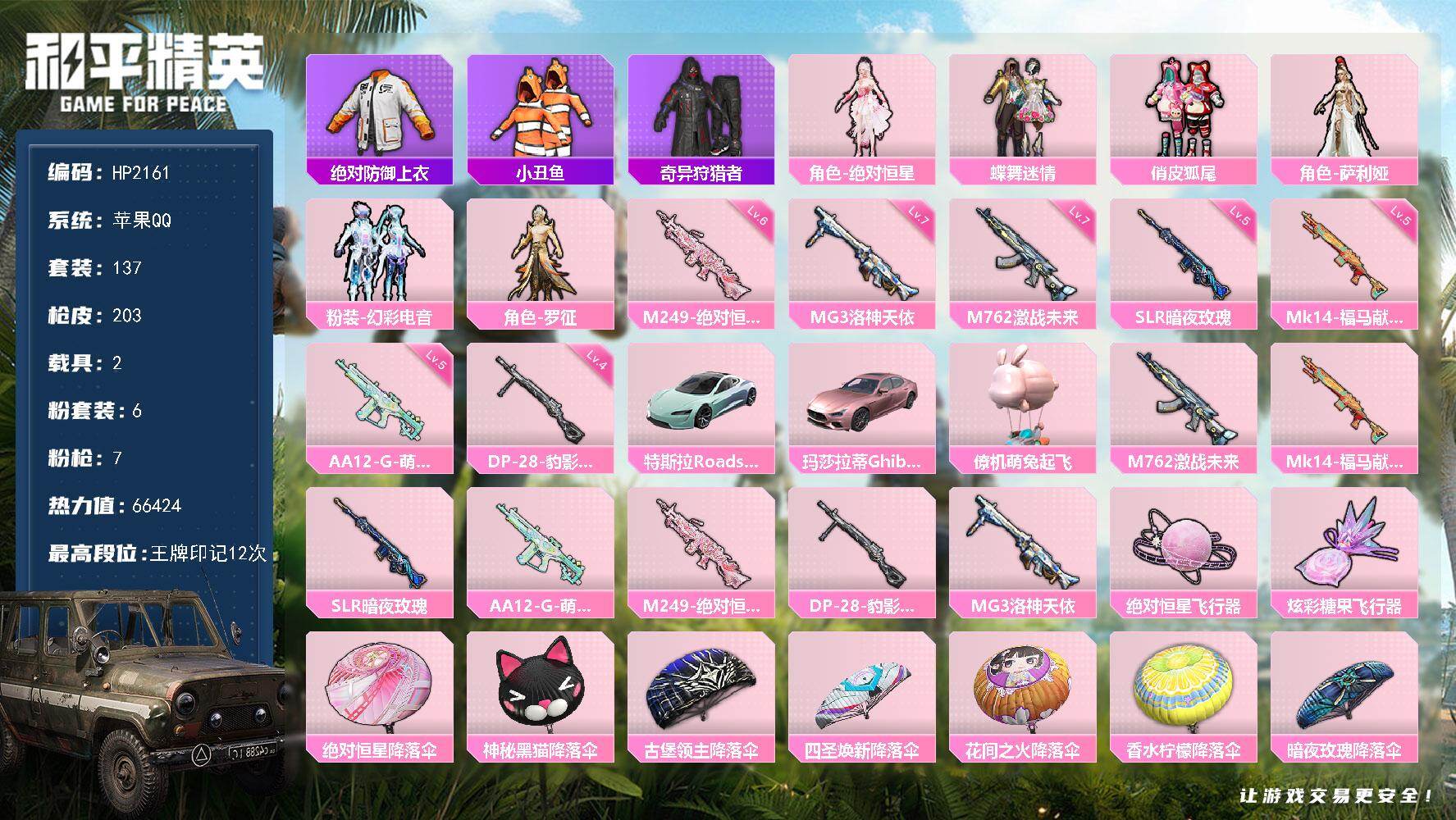 白菜价公主号【12粉装-6粉枪-0载具-4珍稀飞行器-165套装-184枪皮】热力值:61833