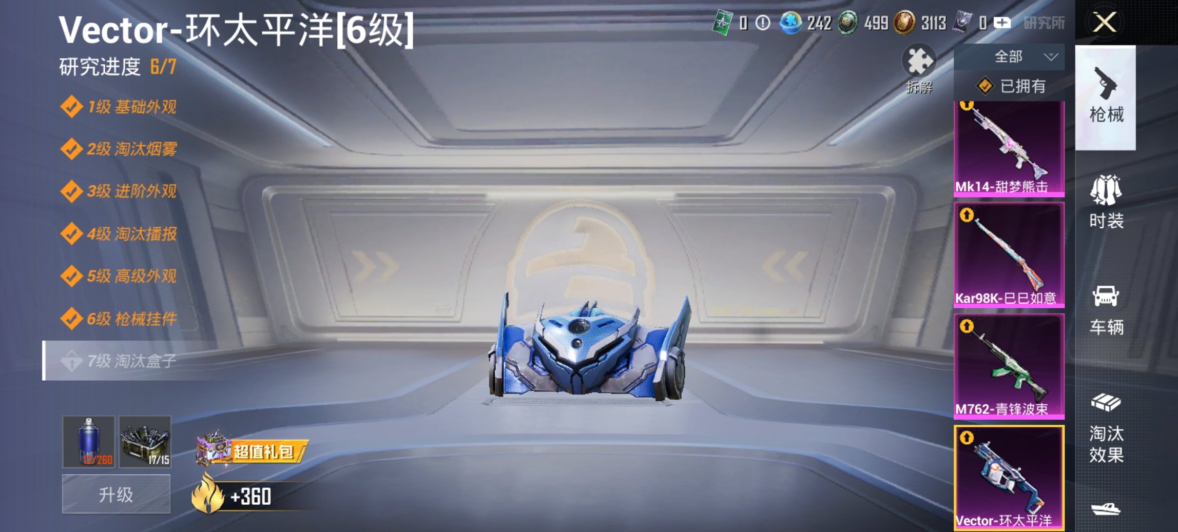 1载具-123套装-186枪皮-1红装2稀有1载具13粉装9特效枪11热门123