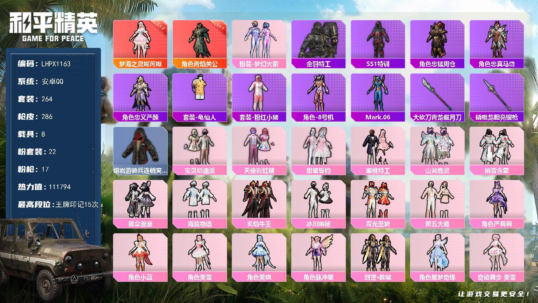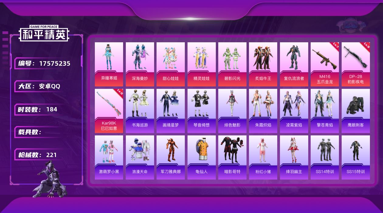 【店主推荐捡漏号!可直接换绑】安卓 手Q-1神装-9粉装-15特效枪-1载具-
