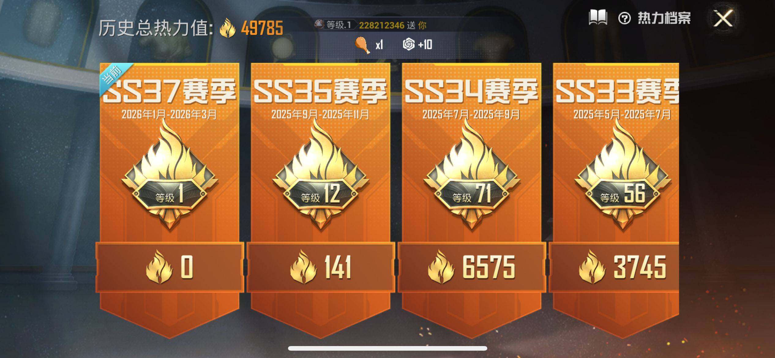 155套装/枪械11/装备253/战备136/王牌印记12/热力值59803/