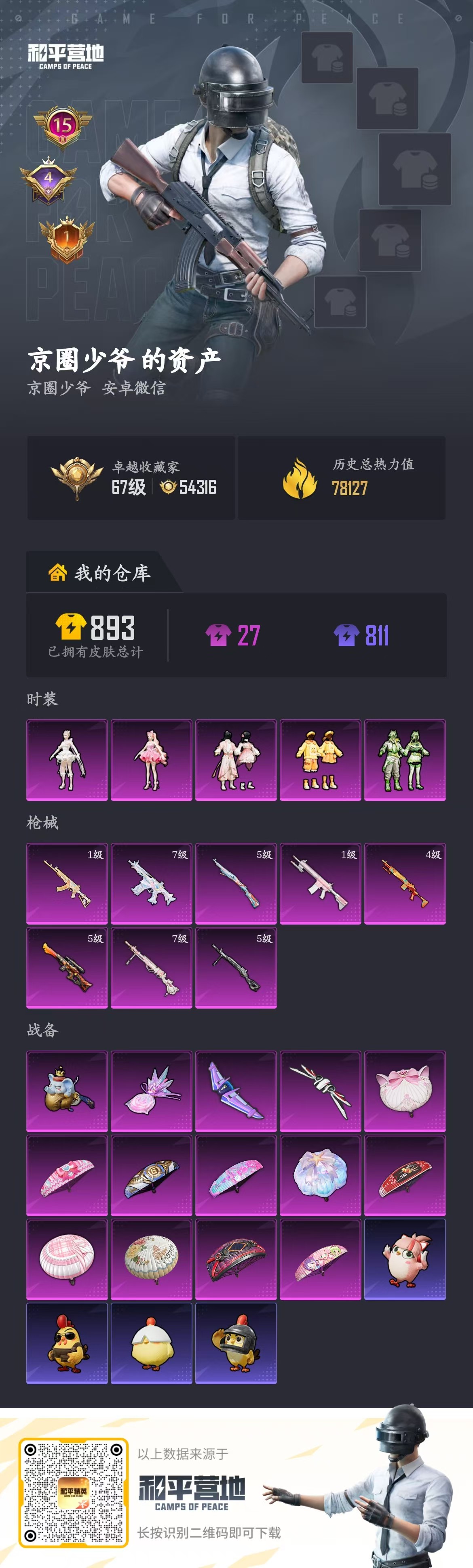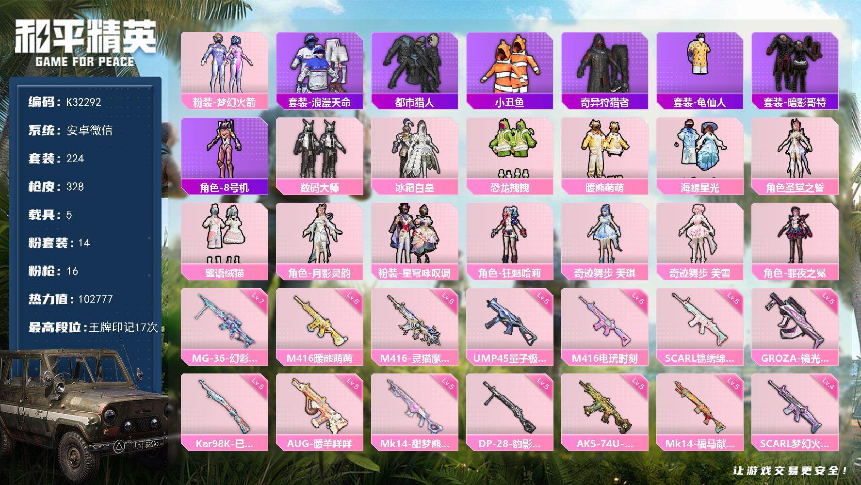安卓 微信-14粉装-16特效枪-5载具-5粉色飞行器-102777热力值-17