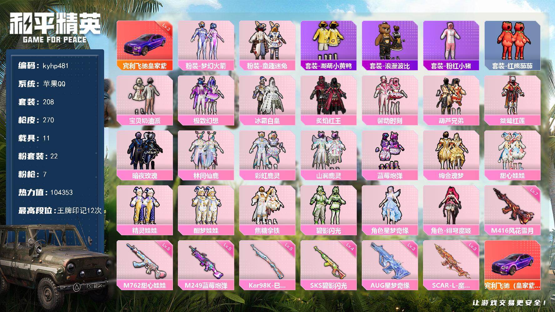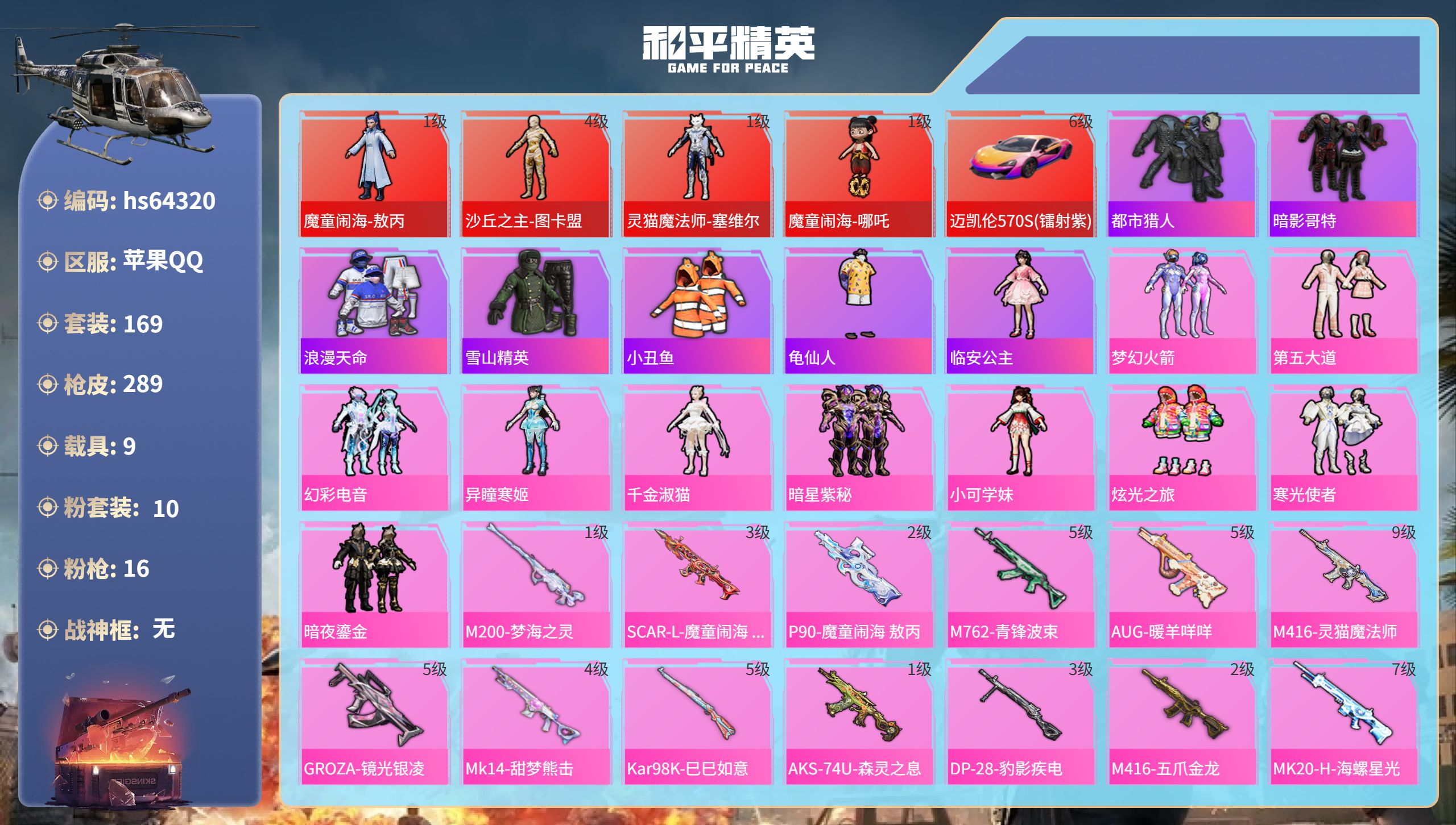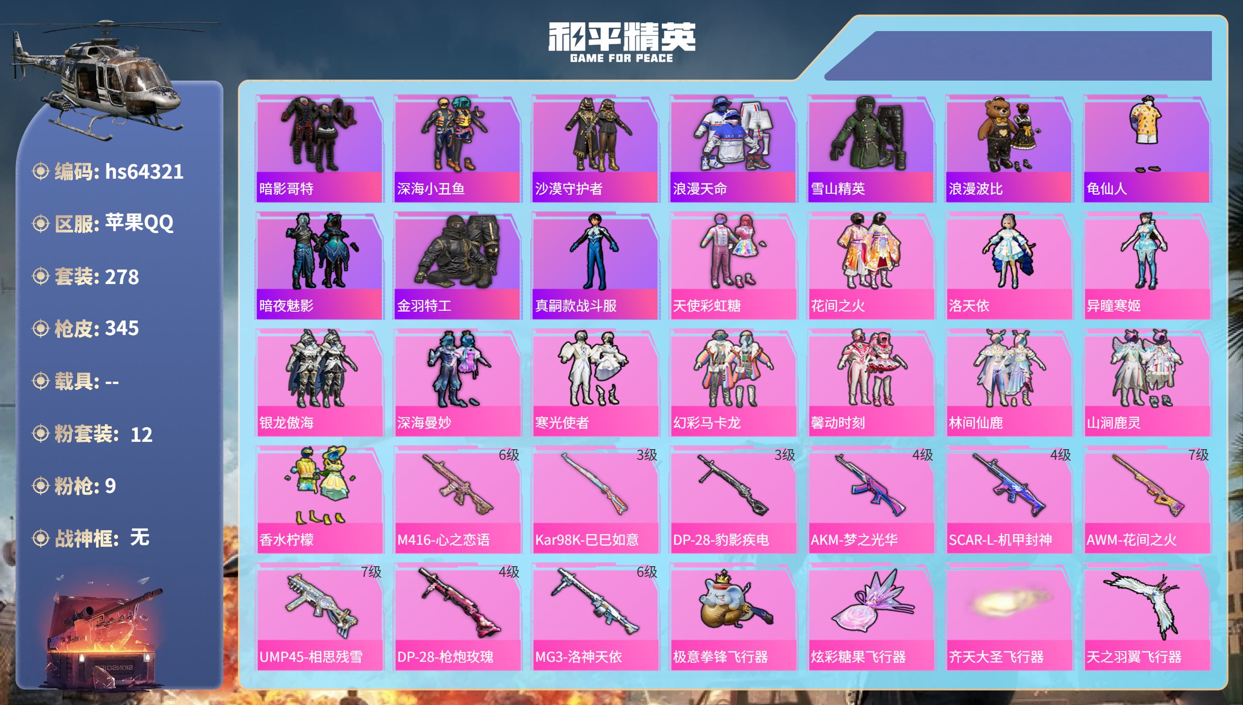 苹果手Q-16王牌印记-12粉装-9特效枪-热力值-278套装-