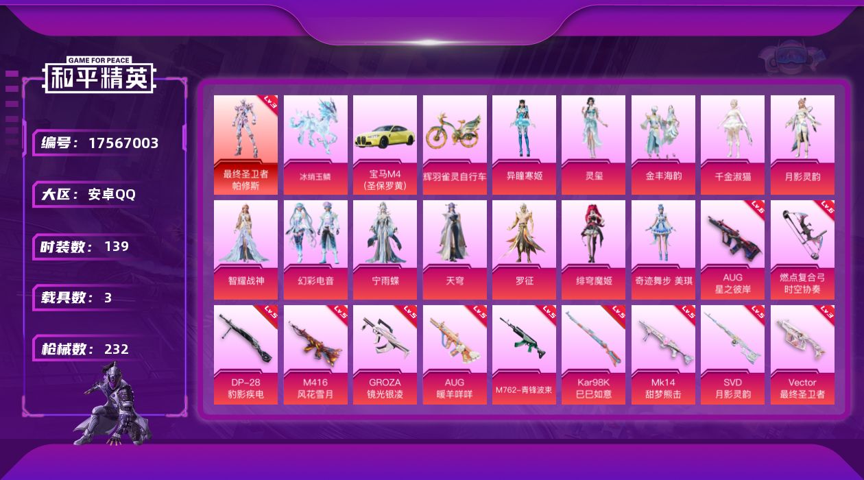 安卓 手Q-4神装-11粉装-20特效枪-6载具-22粉色飞行器-108737