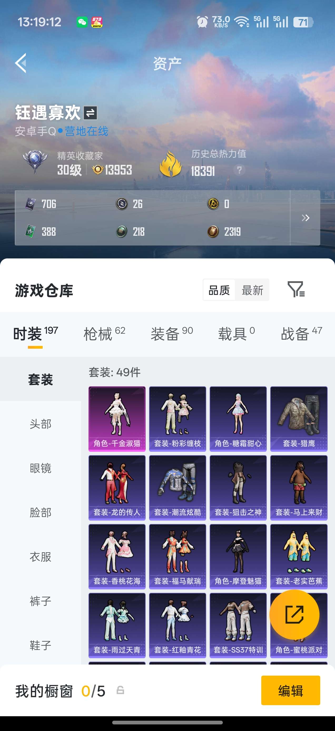 安卓 手Q-7粉装-11特效枪-2载具-3粉色飞行器-84646热力值-18王牌