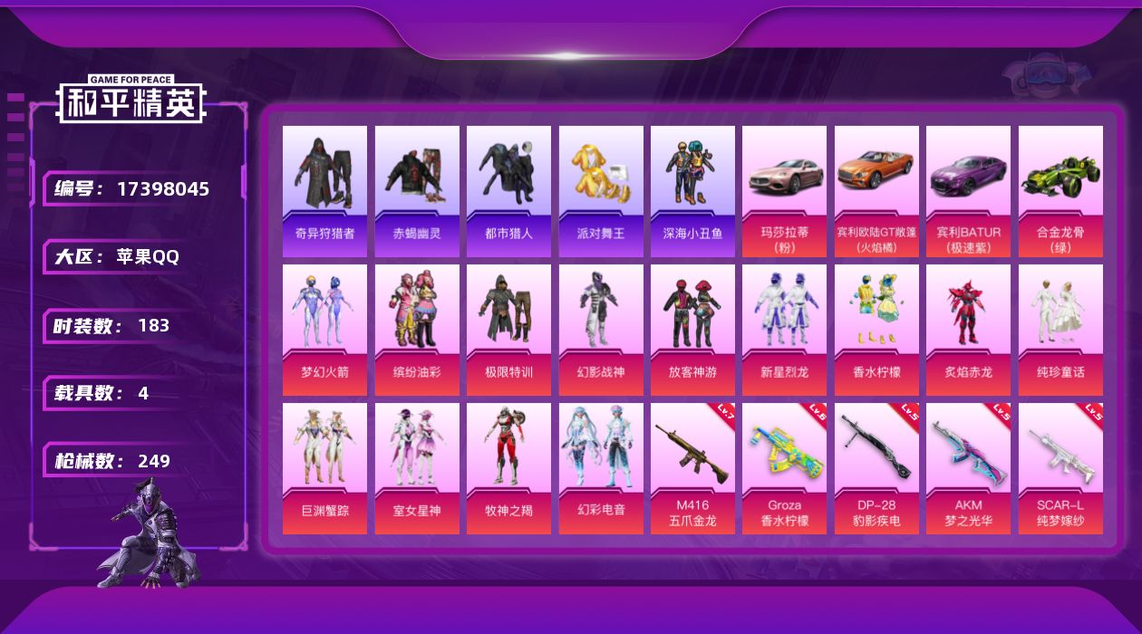 【3级图卡盟2载具-1神装-4粉装-8特效枪】苹果手Q-2载具-1神装-4粉装-