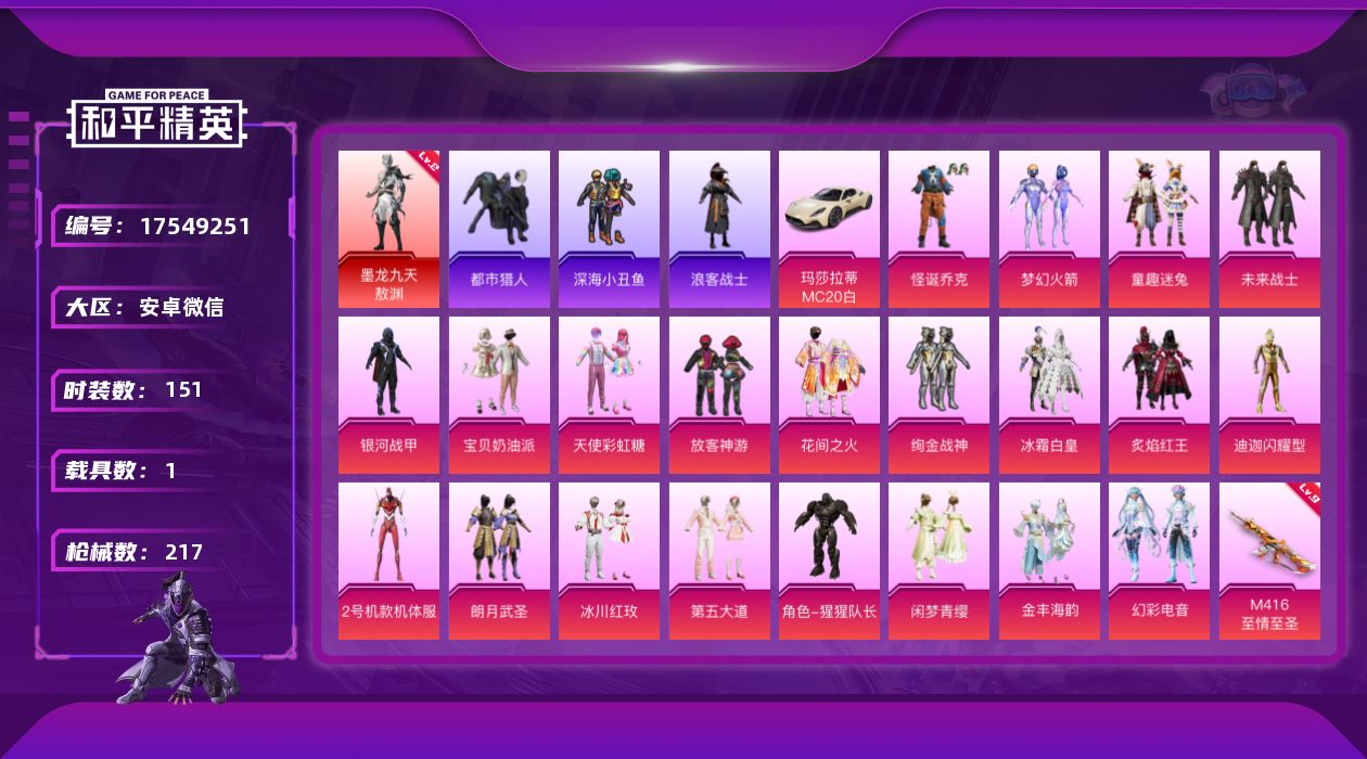 9粉装-7特效枪-0载具-7粉色飞行器-65883热力值-12王牌印记-160套装-227枪皮