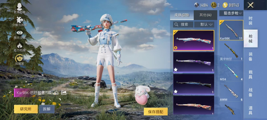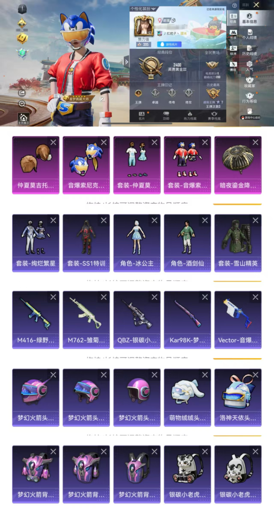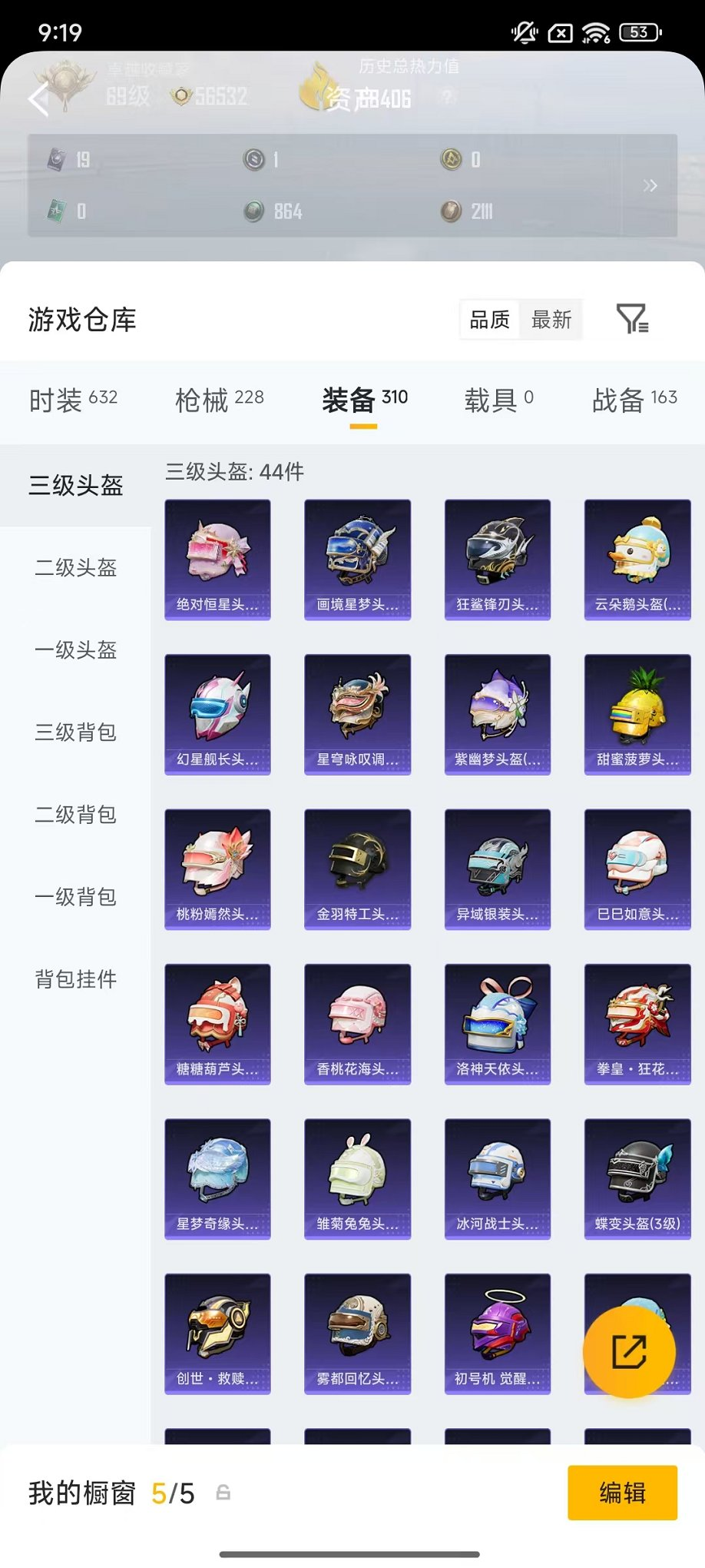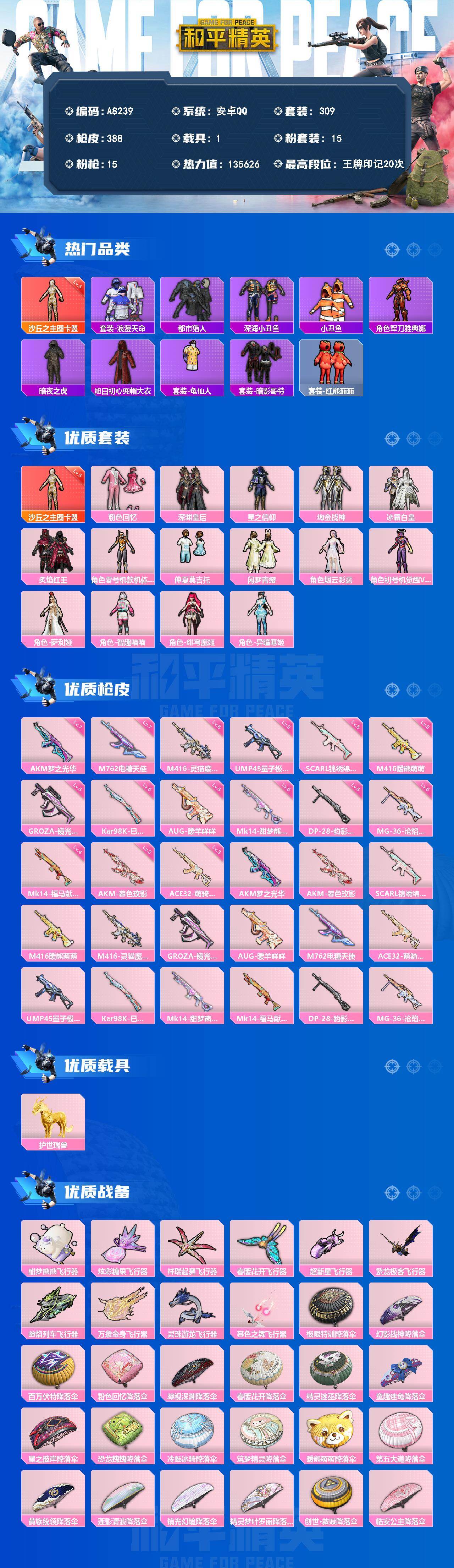 1神装-15粉装-15特效枪-1载具-10粉色飞行器-135626热力值-20王牌印记-309套装-388枪皮