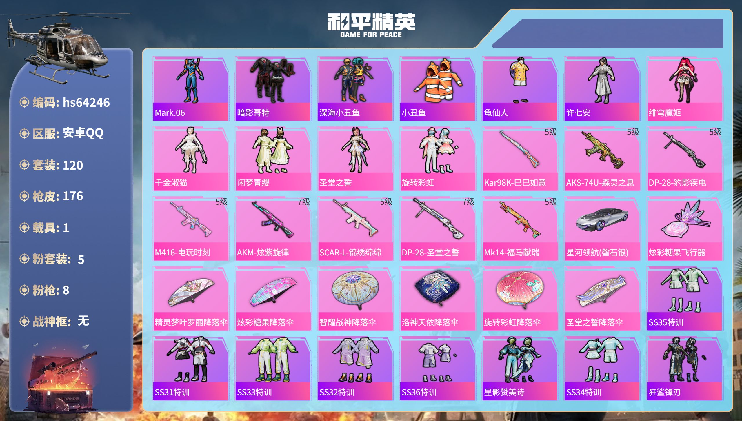 【3载具4粉装5特效枪 可秒换绑不用等】 安卓Q区-498