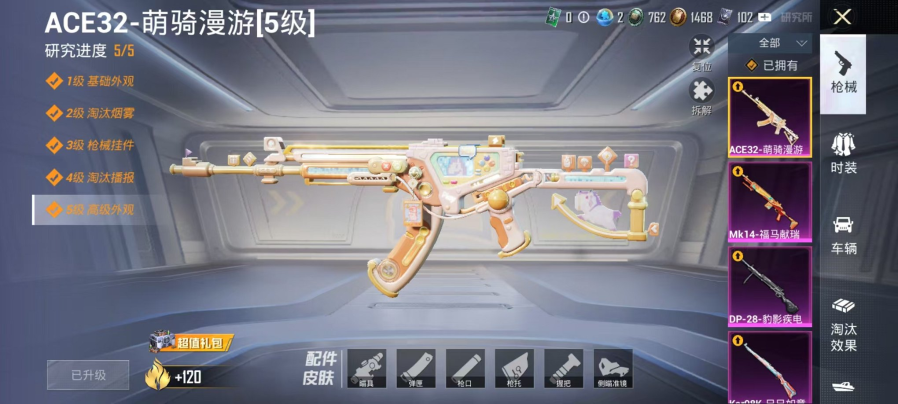 17王牌印记-5粉装-8特效枪-1载具-52462热力值-120套装-176枪皮-5卓越印记-1传奇印记