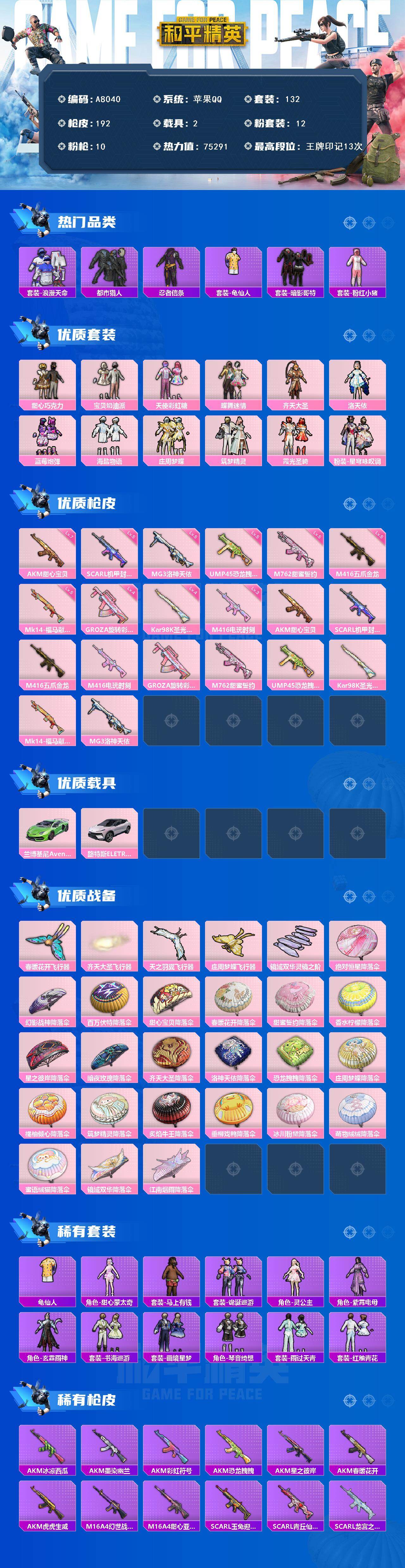 12粉装-10特效枪-2载具-5粉色飞行器-75291热力值-13王牌印记-132套装-192枪皮