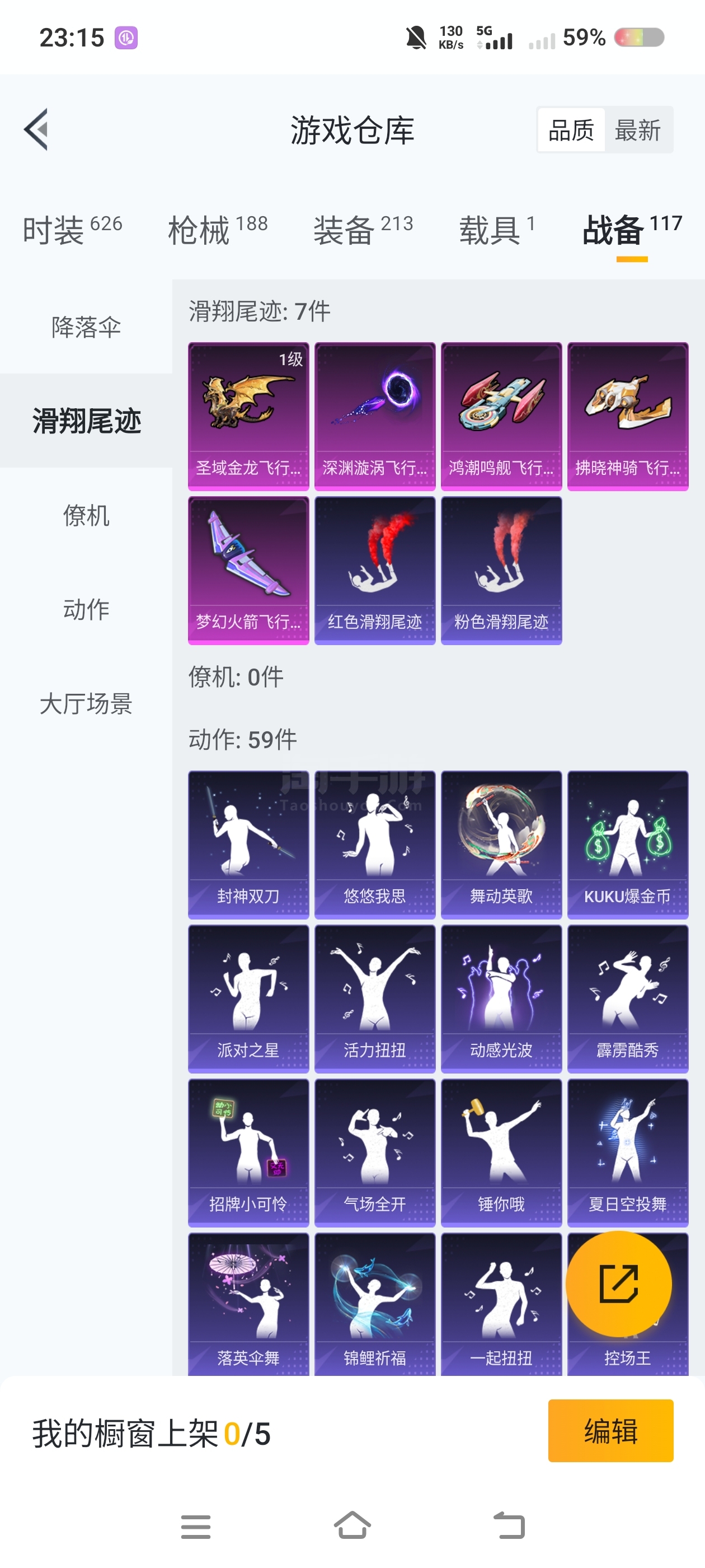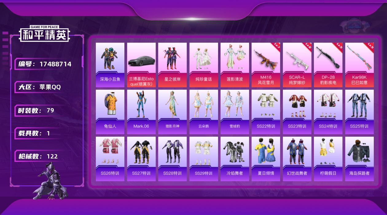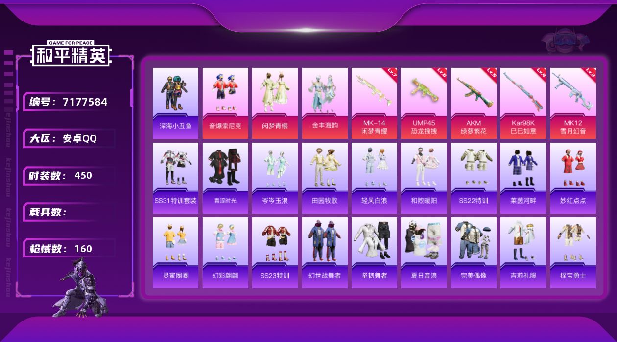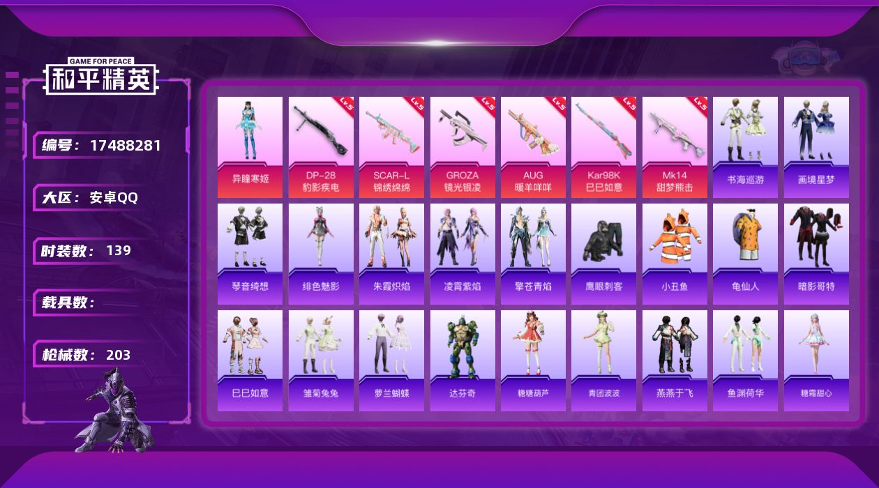 时装数: 450 枪械数: 160 战备数: 119