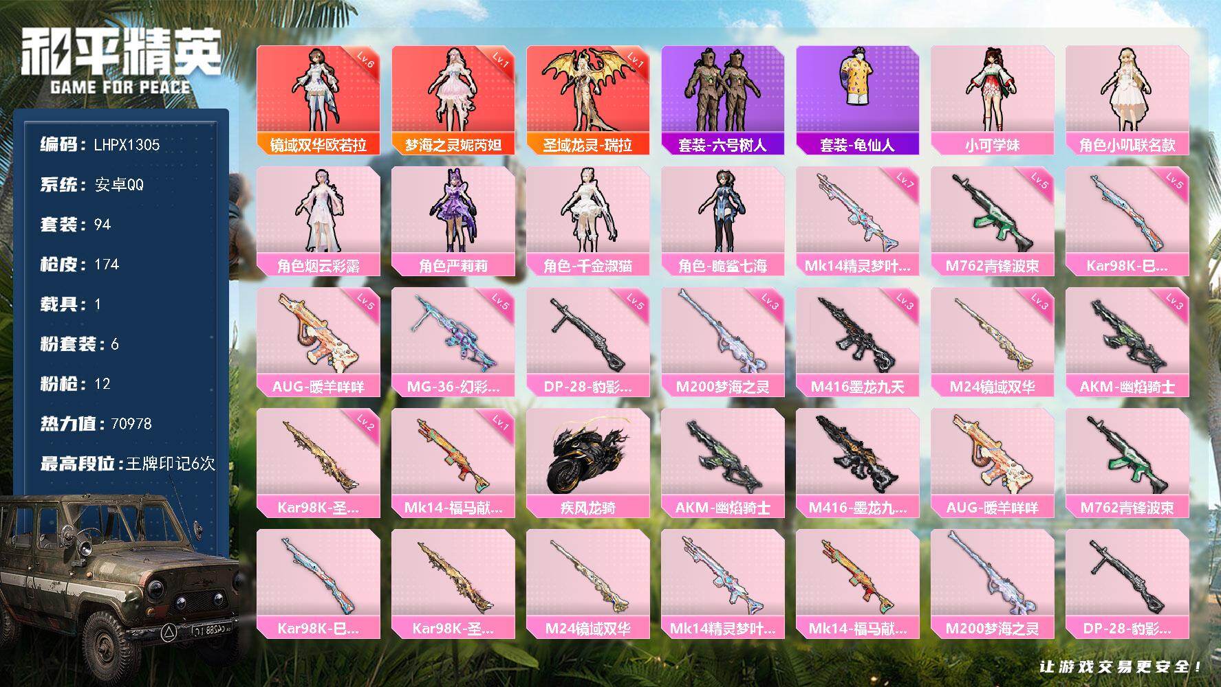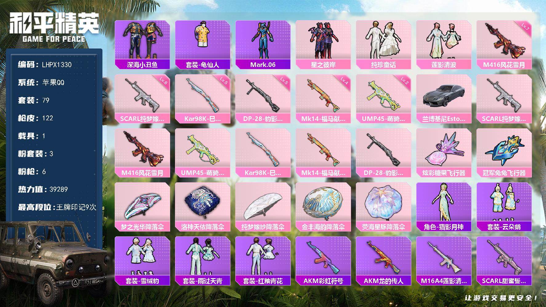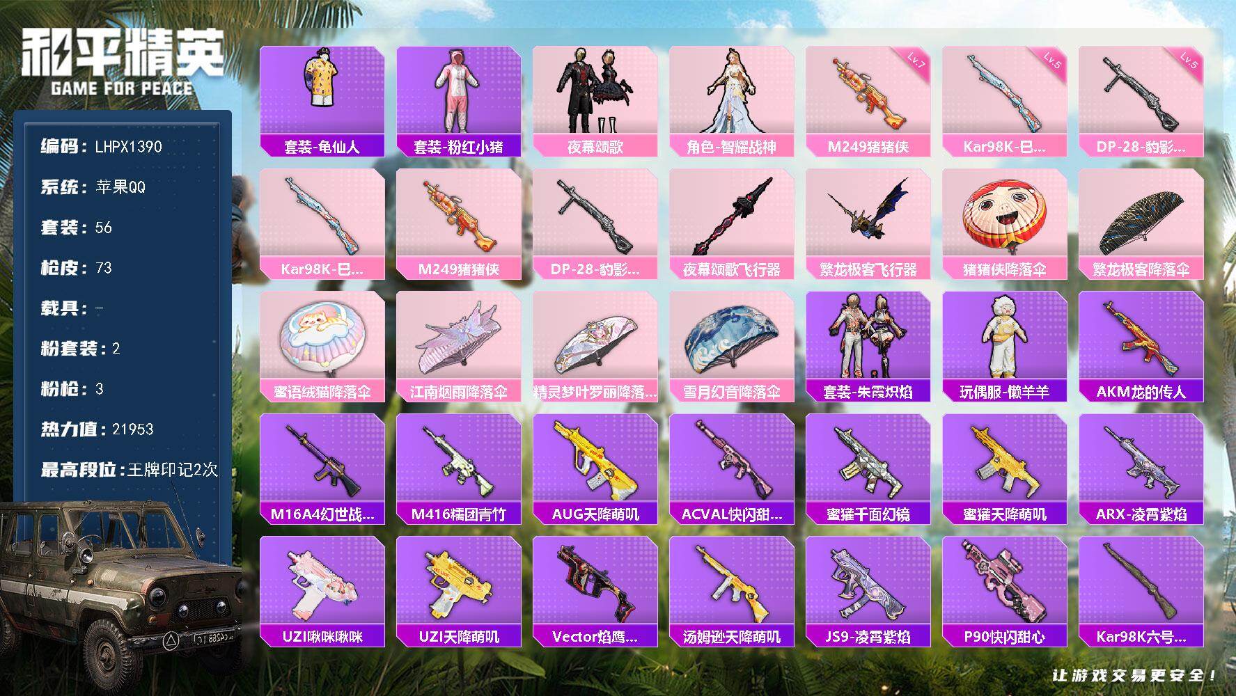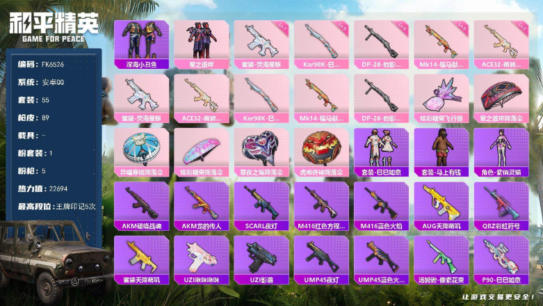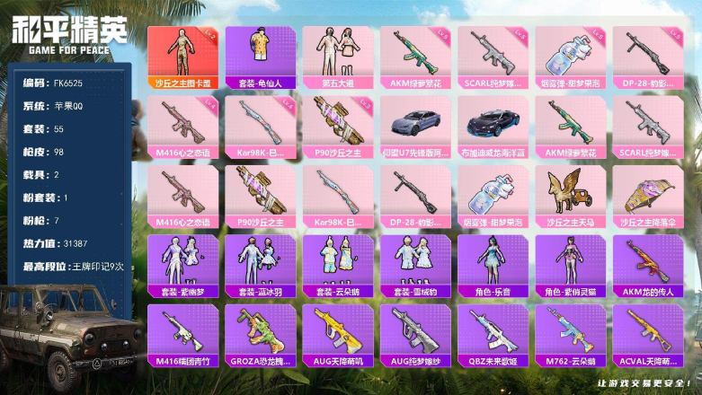 载具1粉枪2枪皮300粉装80套装700,充了 2w 极品账号绝对欧皇带妹专用价格可以谈真心卖