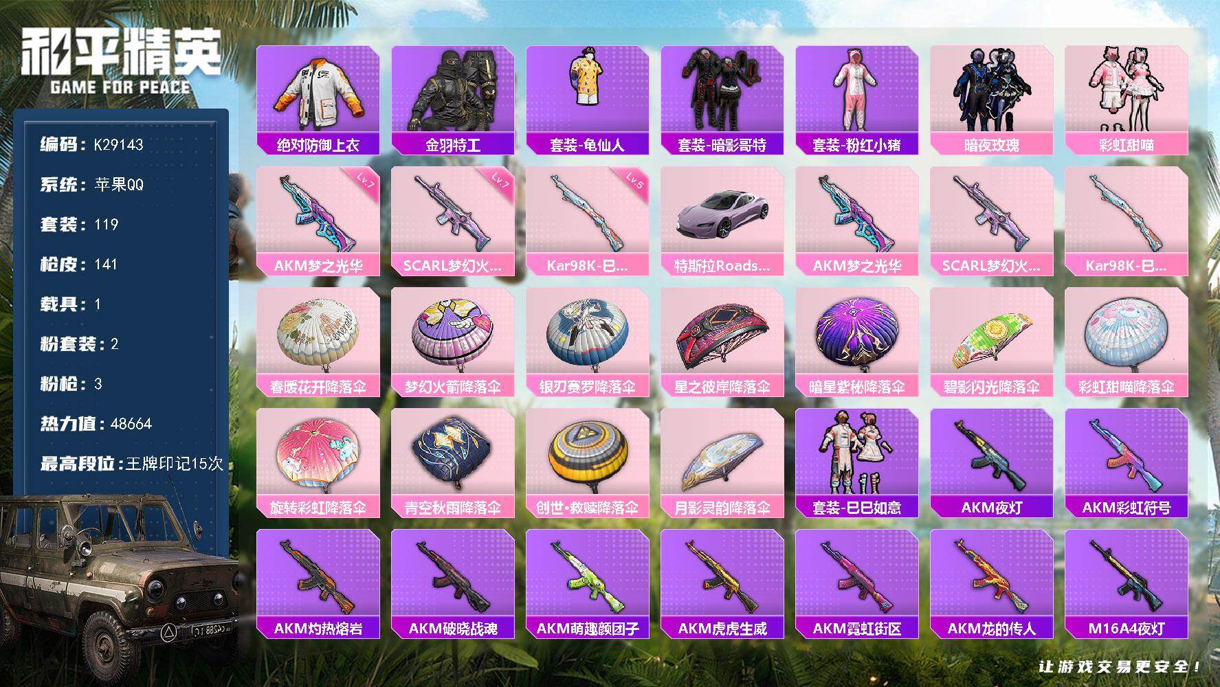 3粉装-4特效枪-2载具-0粉色飞行器-48600热力值-6王牌印记