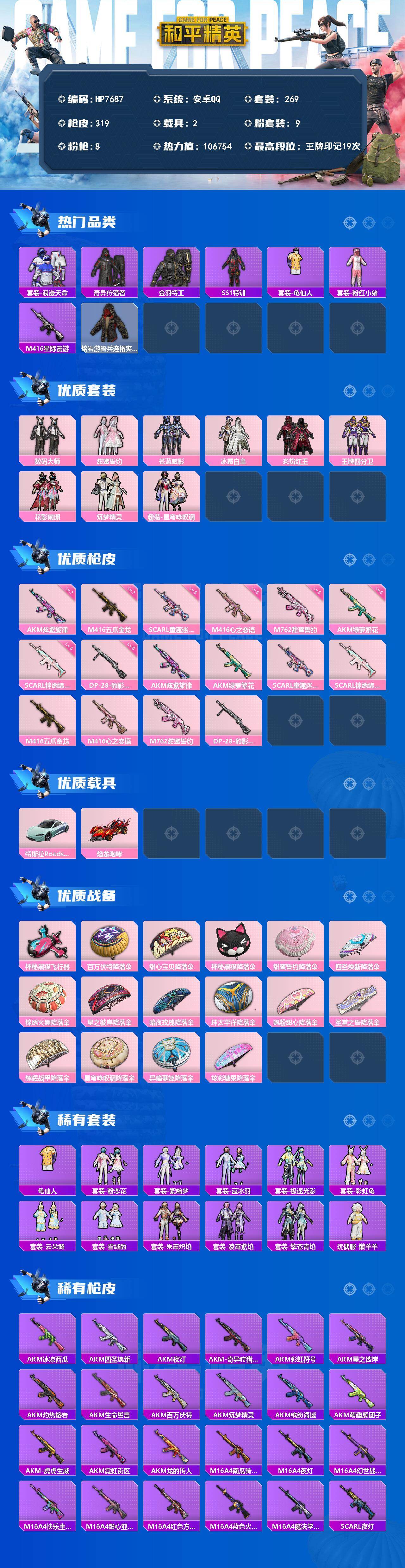【特价处理】【满级至情至圣】安卓 手Q-16粉装-7特效枪-6载具-3粉色飞行