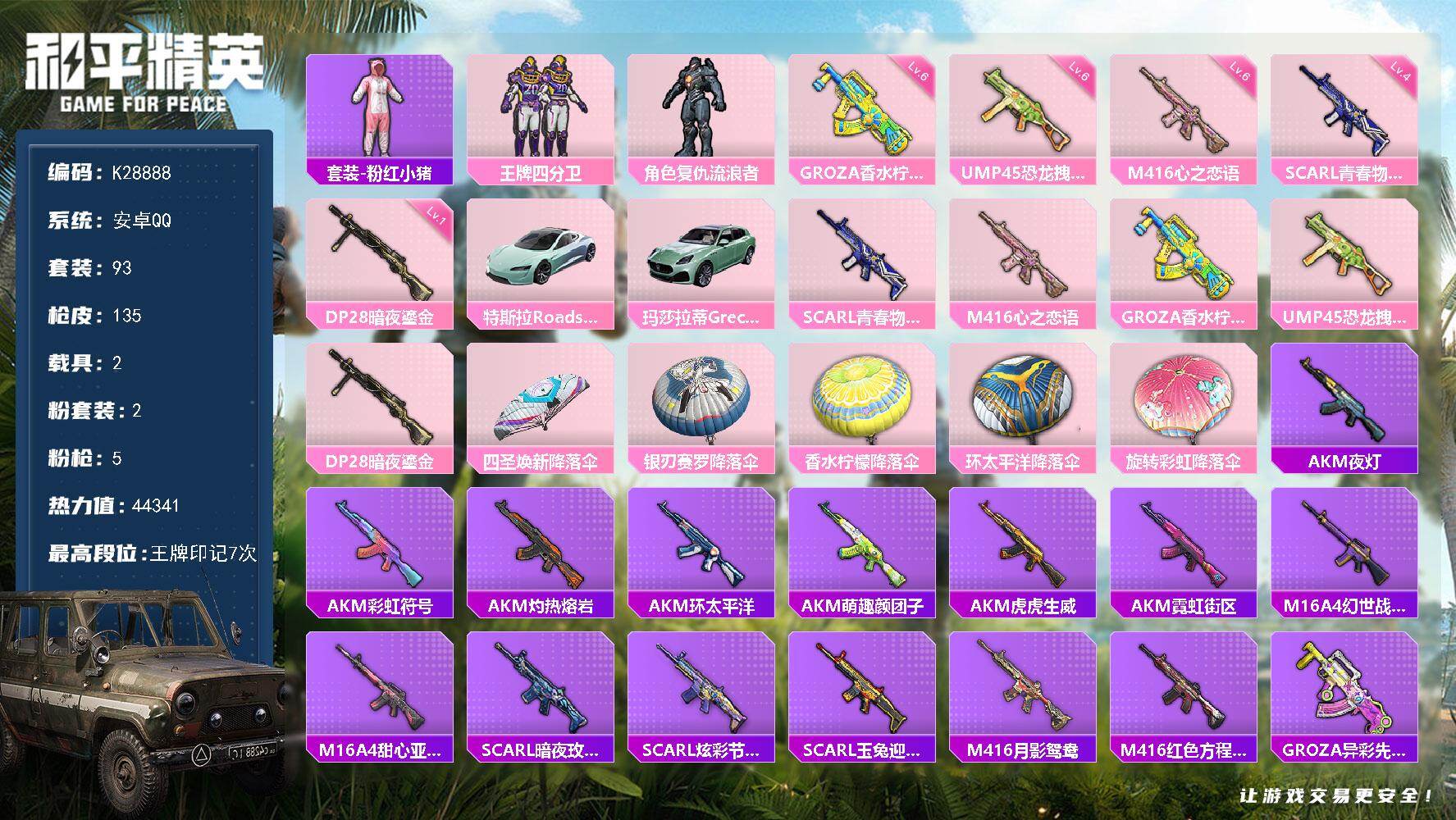 安卓 手Q-7粉装-7特效枪-1载具-2粉色飞行器-78424热力值-2王牌印记