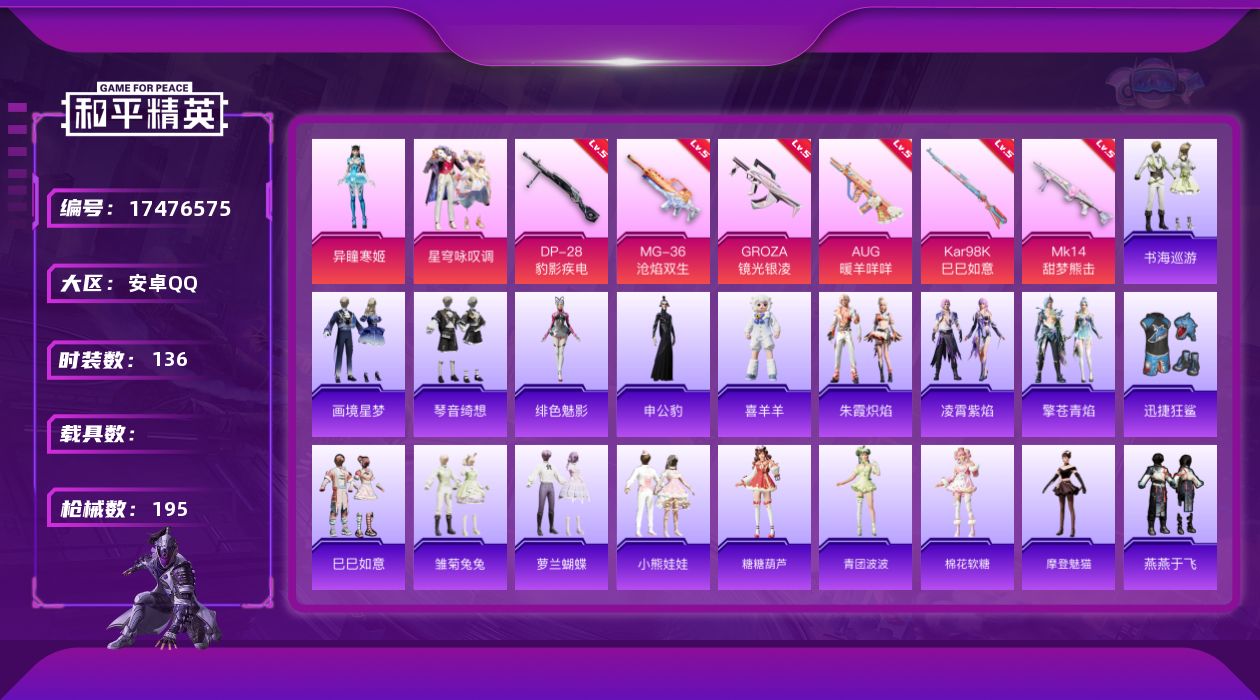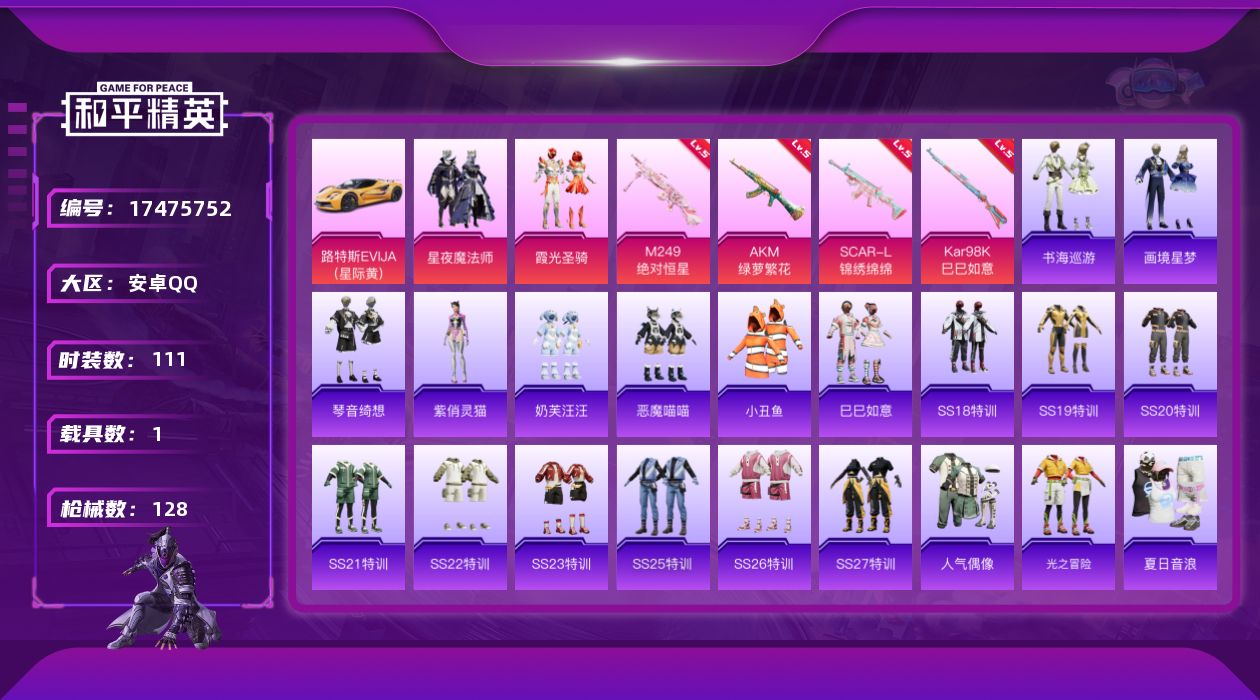 18粉装-9特效枪-201套装-264枪皮-17王牌印记-超级王牌4星-92516热力值