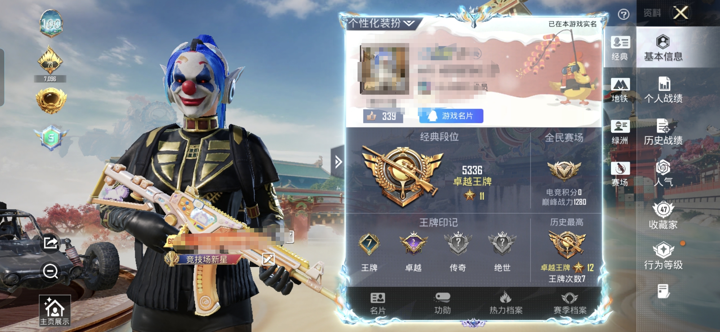 12王牌印记-5红装-22粉装-21特效枪-6载具-热力值-246套装-310枪皮-3卓越印记-2传奇印记