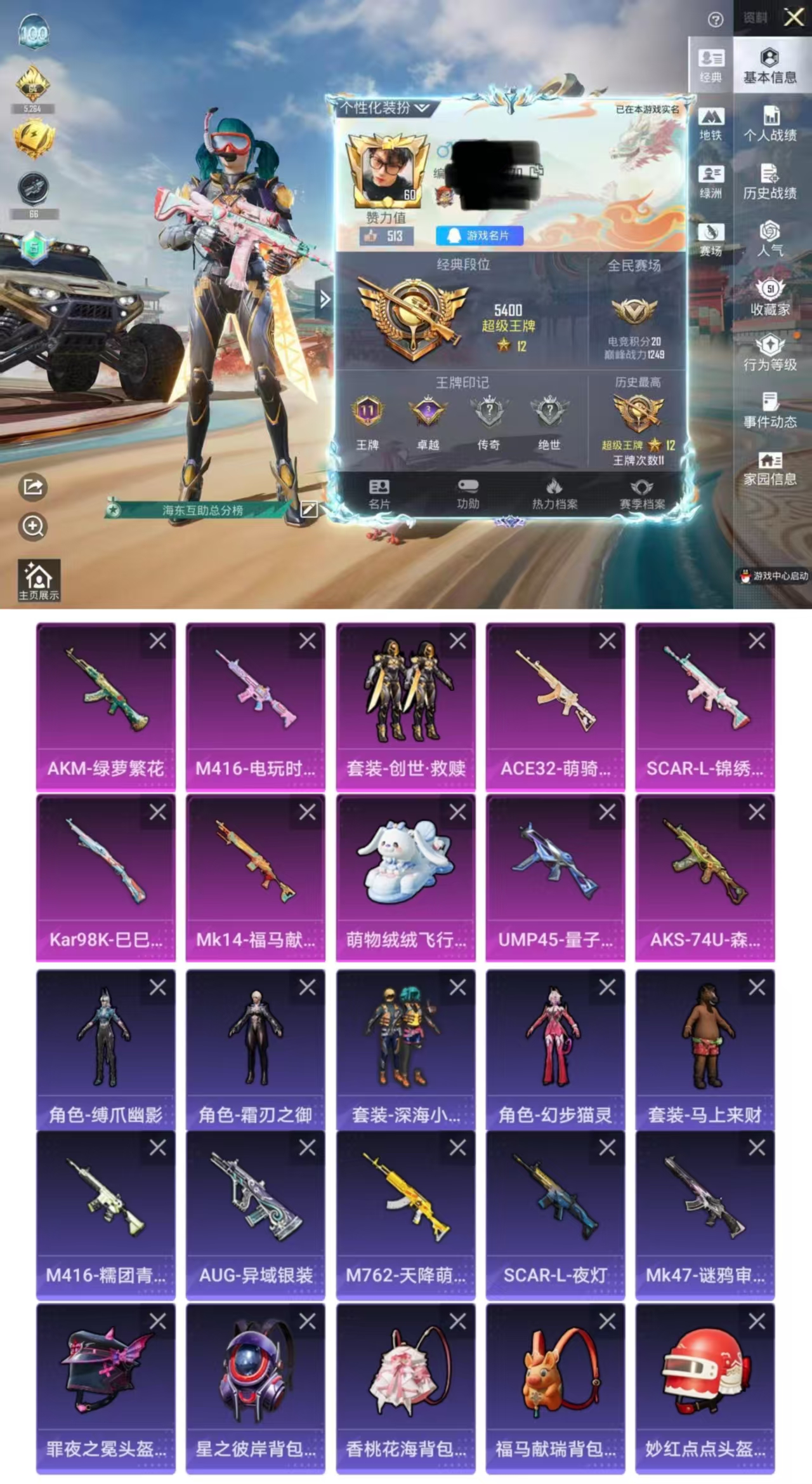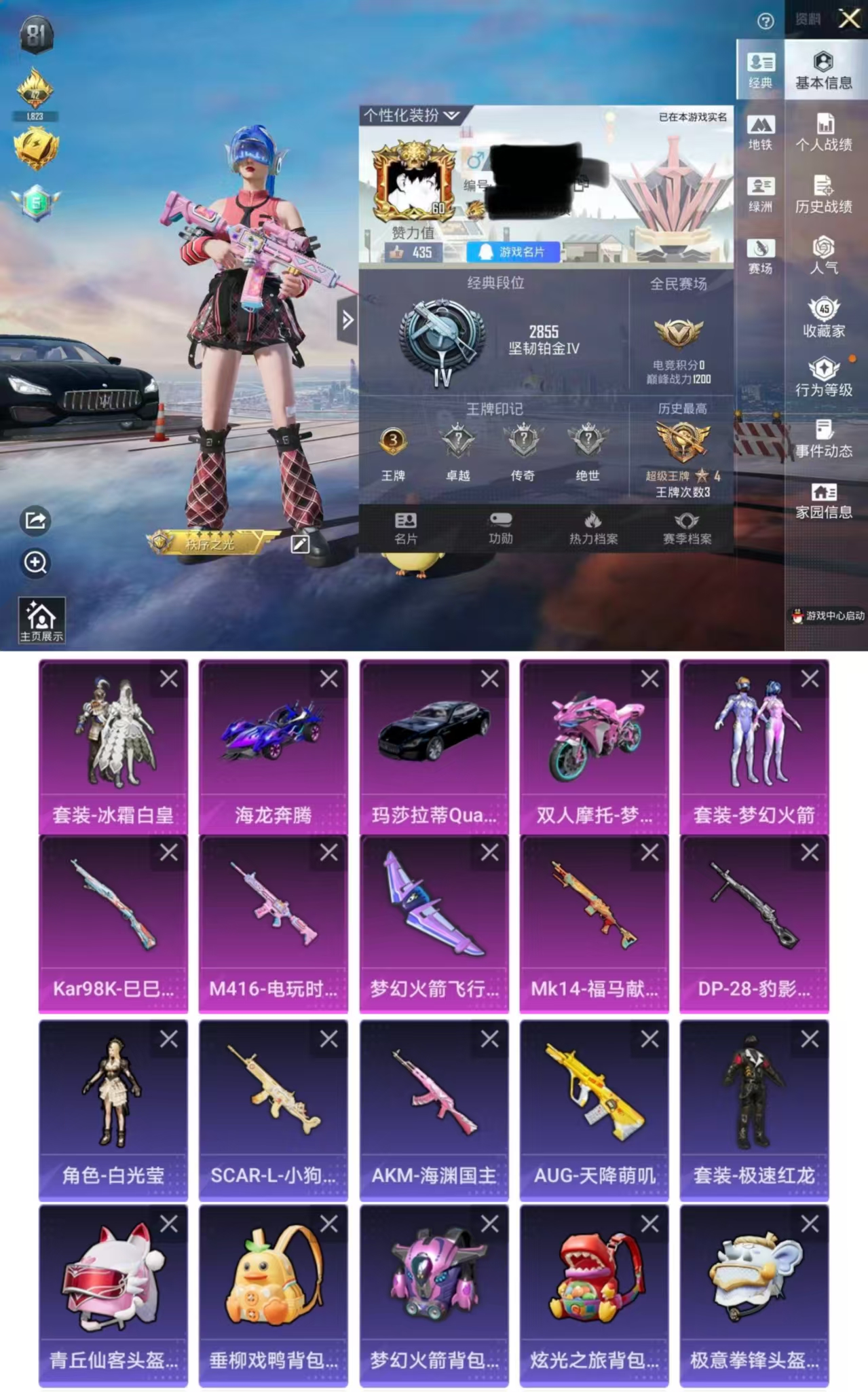 3载具-10粉装-11特效枪-168套装-205枪皮-10王牌印记-超级王牌2星-69881热力值