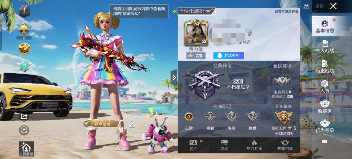 1红装1载具5粉装7特效枪10热门82套装122枪皮 43860热力值 6印记 历史超级王牌7星