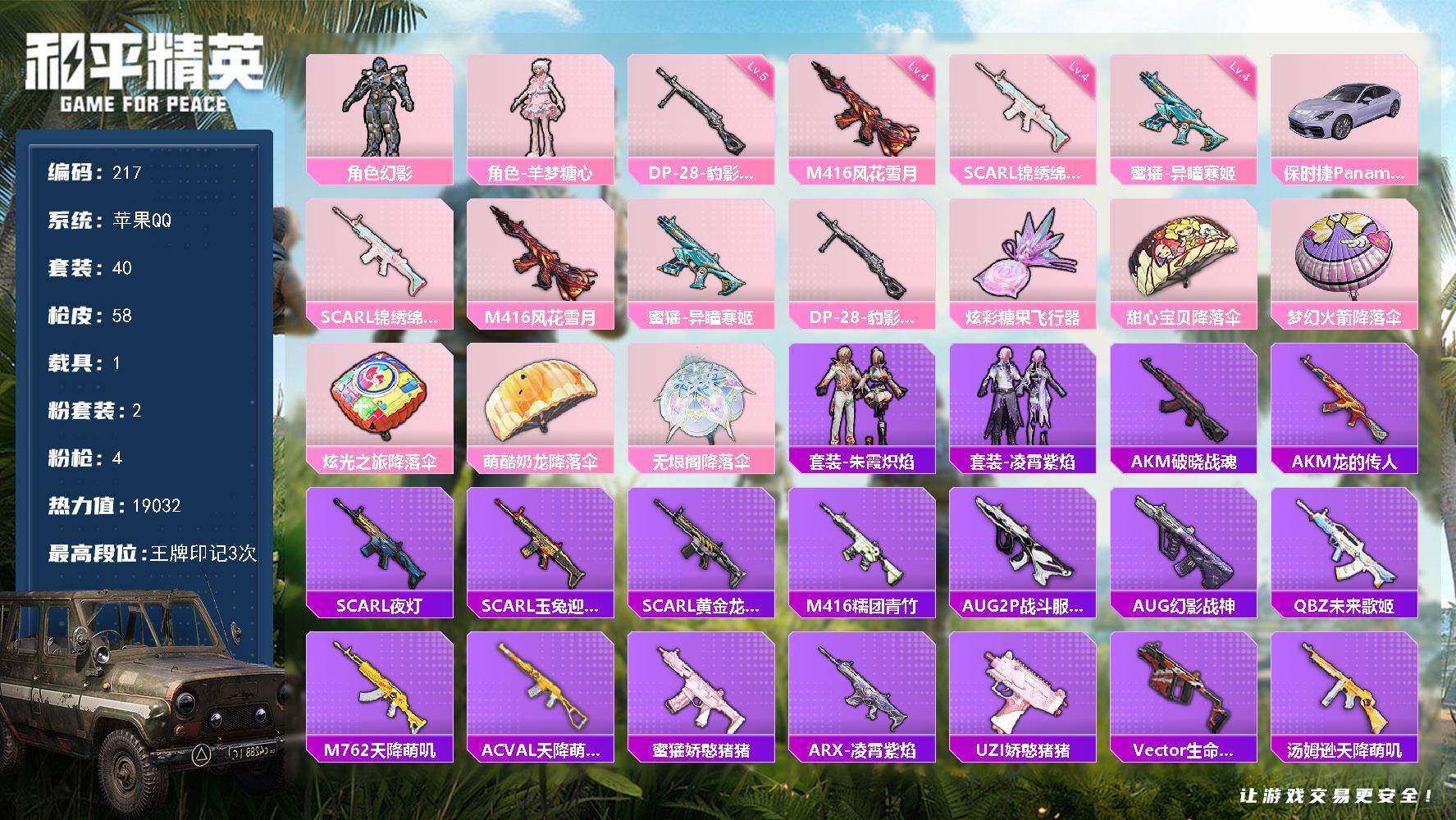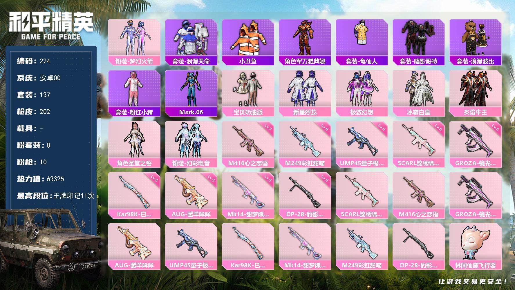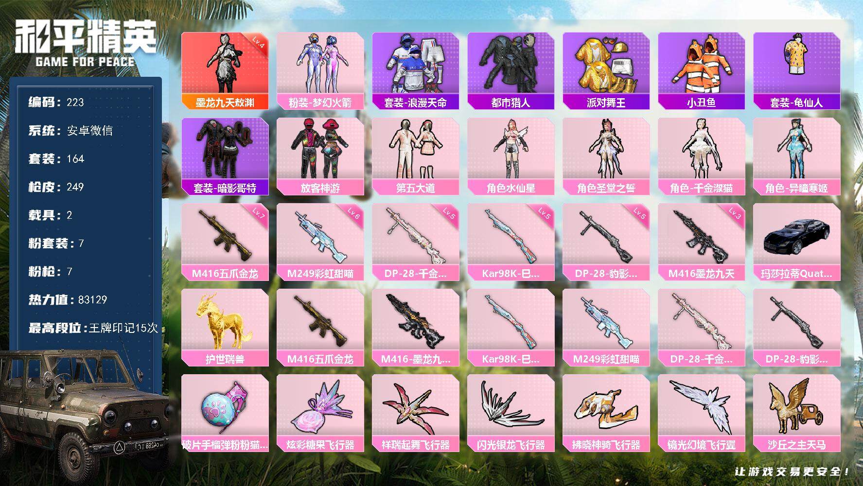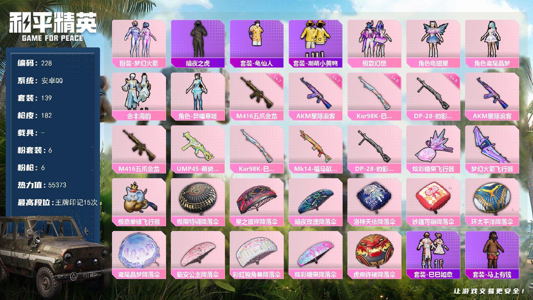 安卓微信-15王牌印记-1红装-7粉装-7特效枪-2载具-8295
