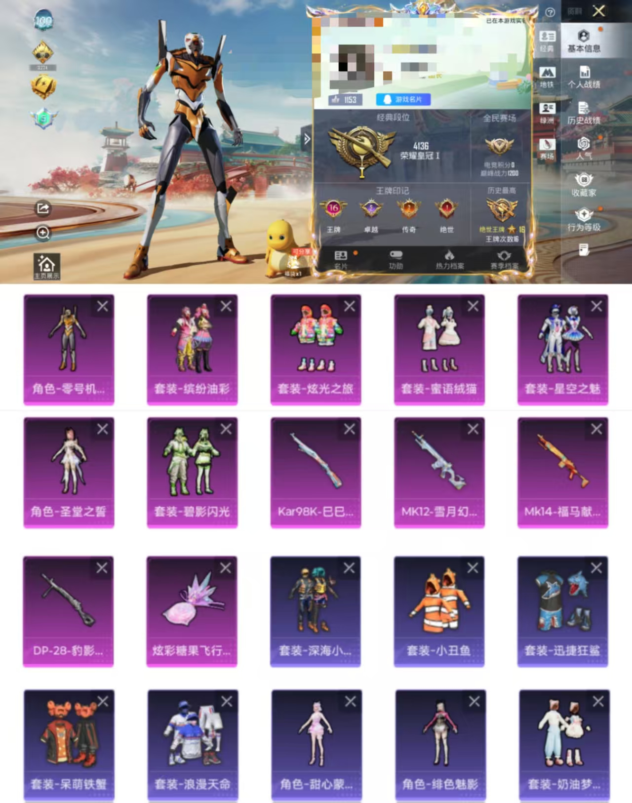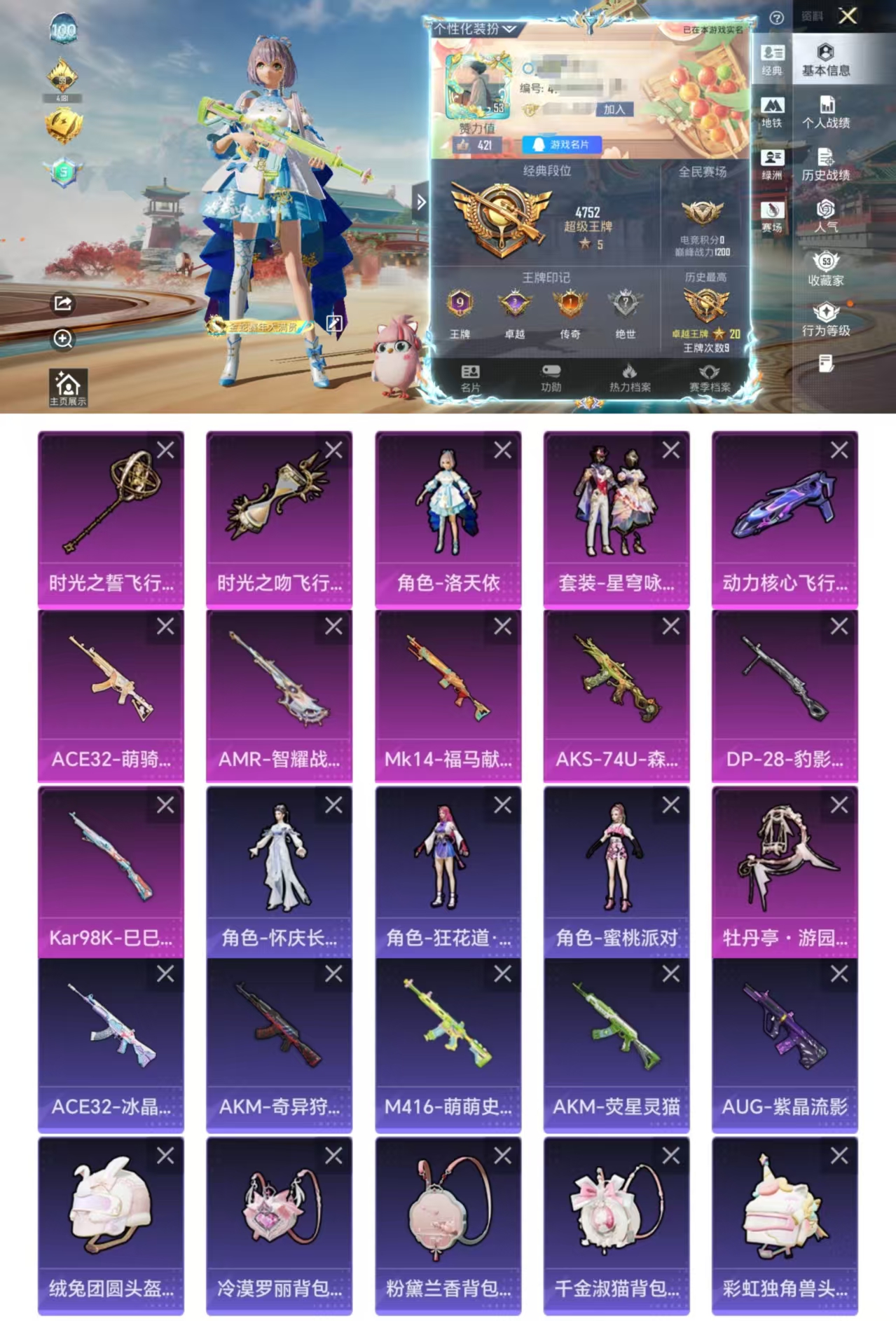 10粉装-6特效枪-169套装-238枪皮-18王牌印记-超级王牌4星-74966热力值