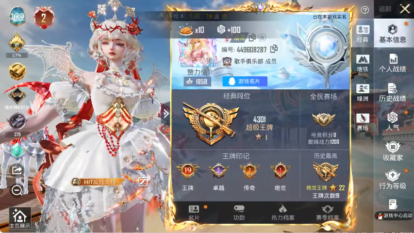 40王牌印记-5红装-14粉装-19特效枪-9载具-热力值-302套装-452枪皮-10卓越印记-9传奇印记