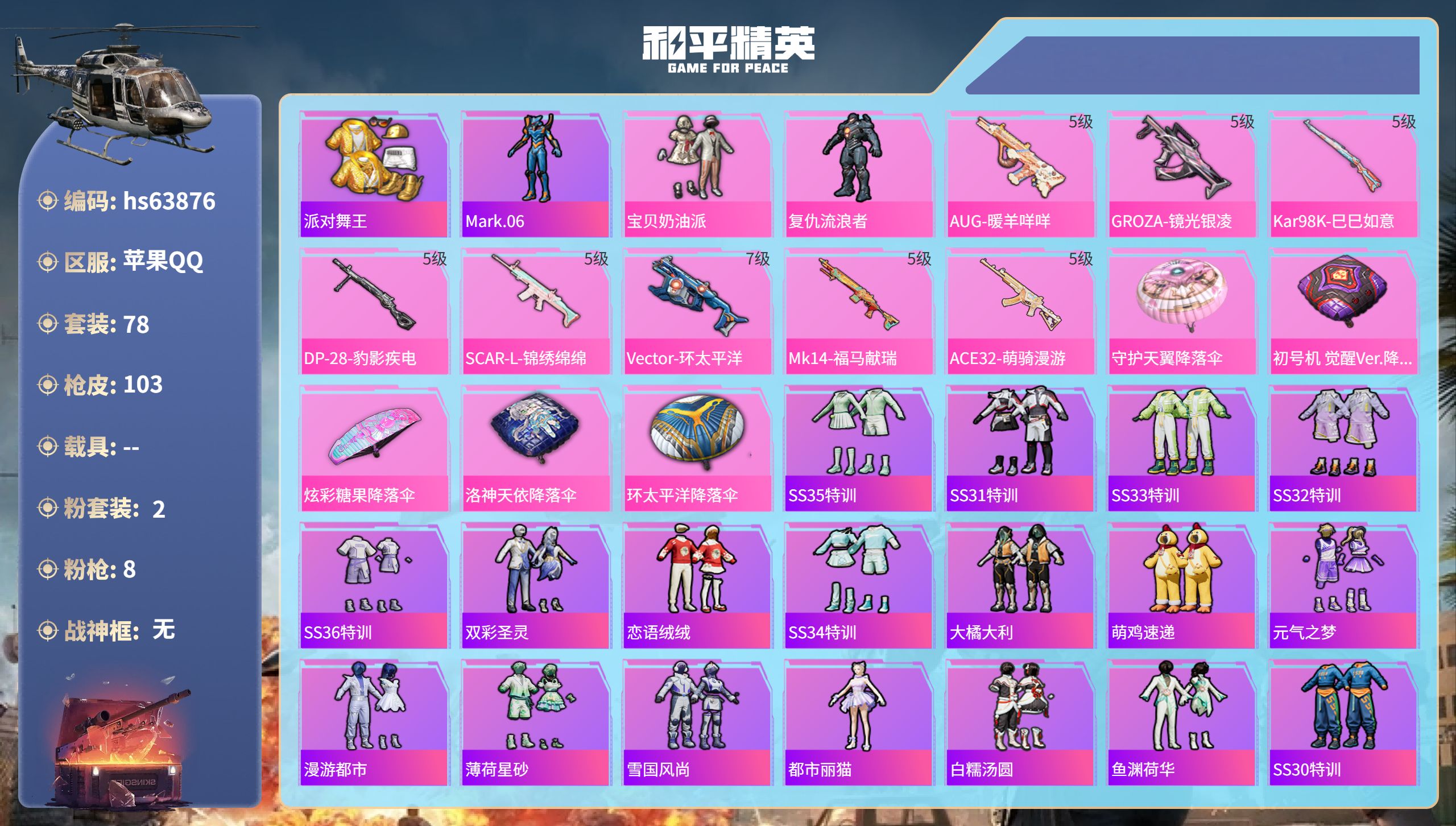 8王牌印记-2粉装-8特效枪-30042热力值-78套装-103枪皮-4卓越印记