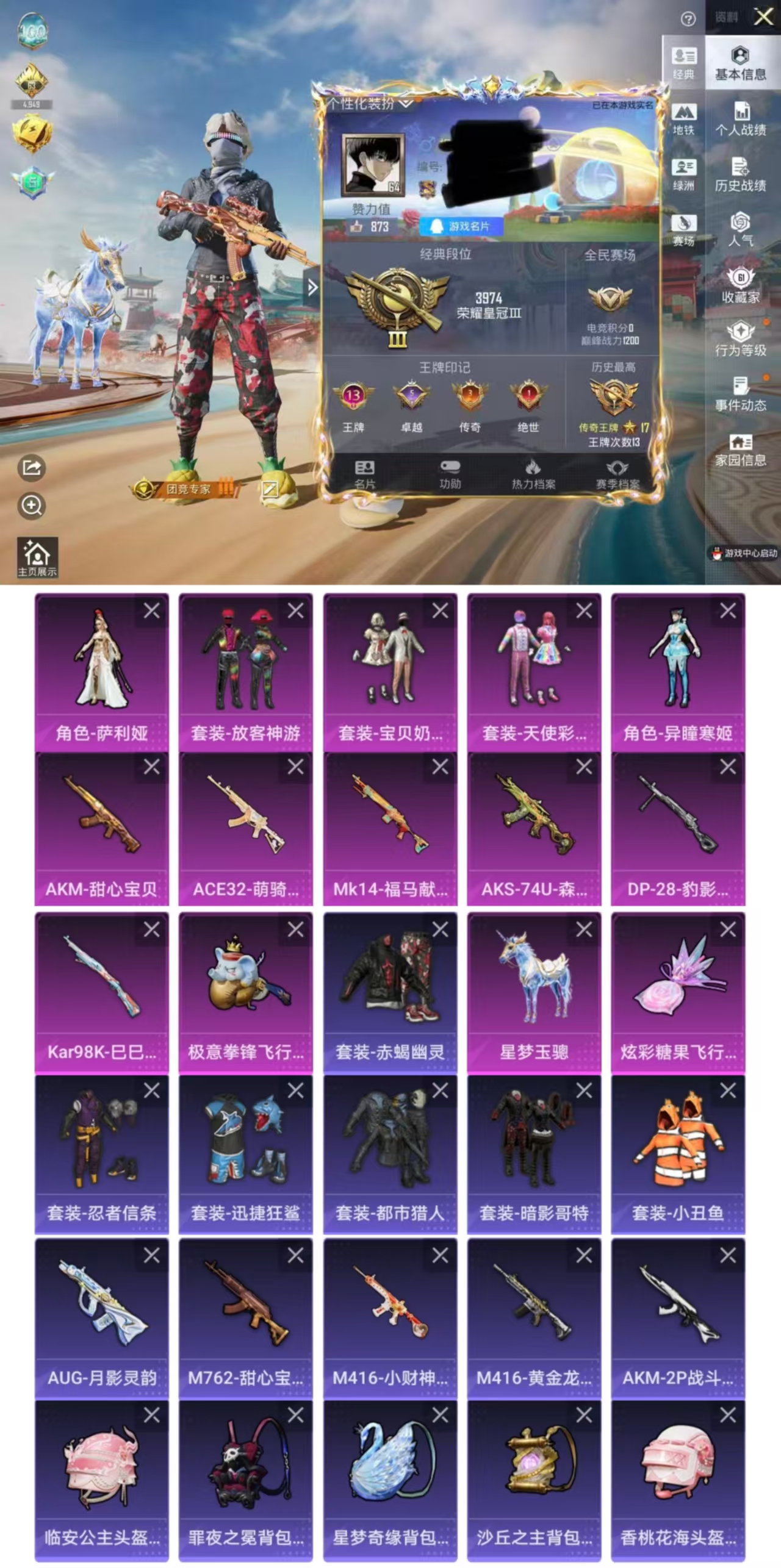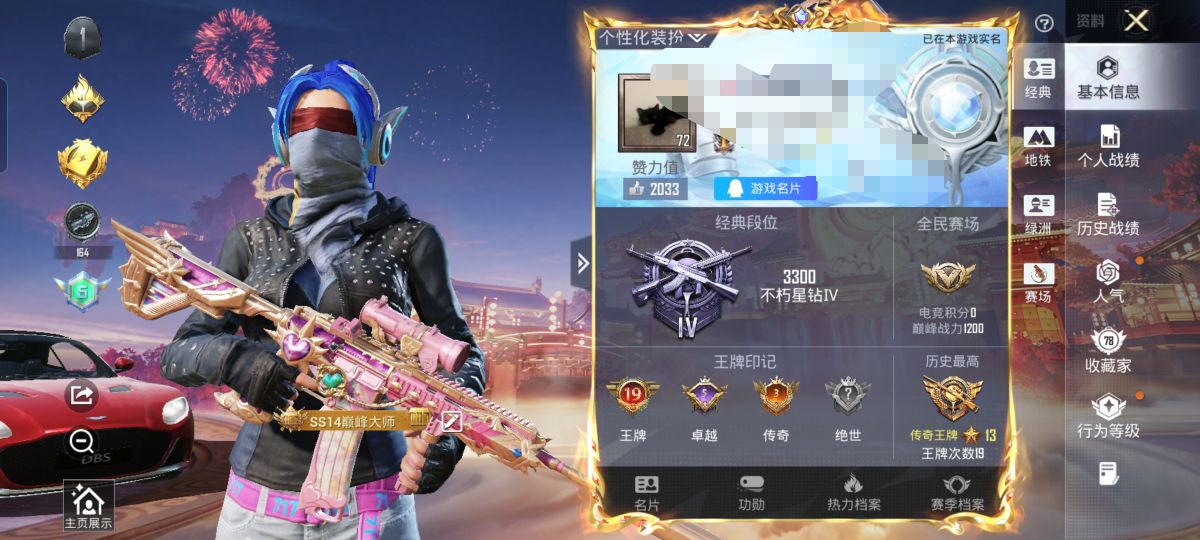 3载具-4粉装-10特效枪-84套装-142枪皮-3王牌印记-不朽星钻Ⅰ-43840热力值