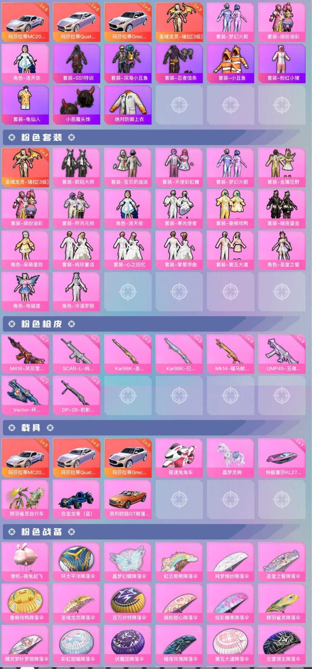 连体号,,带穿越火线,和平两套粉装多升级枪有二次
