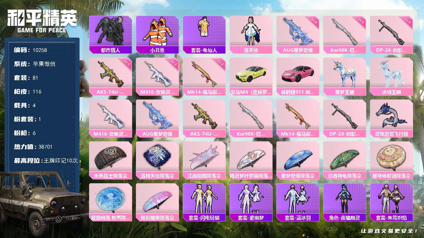 6级AUG-星梦奇缘 4载具 1粉 6特效枪!苹果 微信-1粉装-6特效枪-4