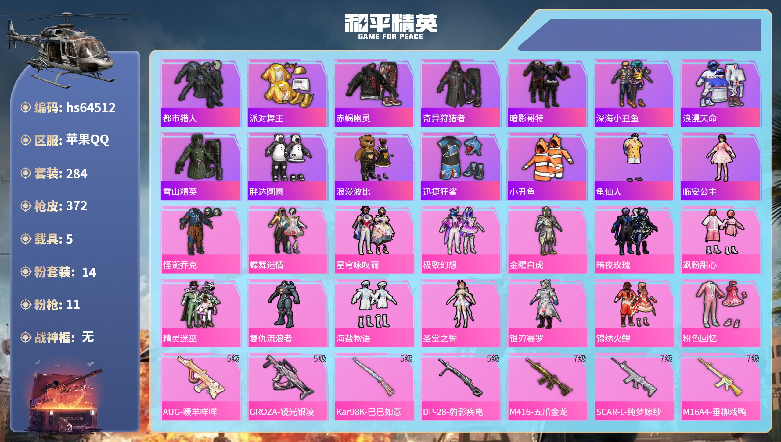 苹果微信-20王牌印记-3红装-12粉装-11特效枪-6载具-热