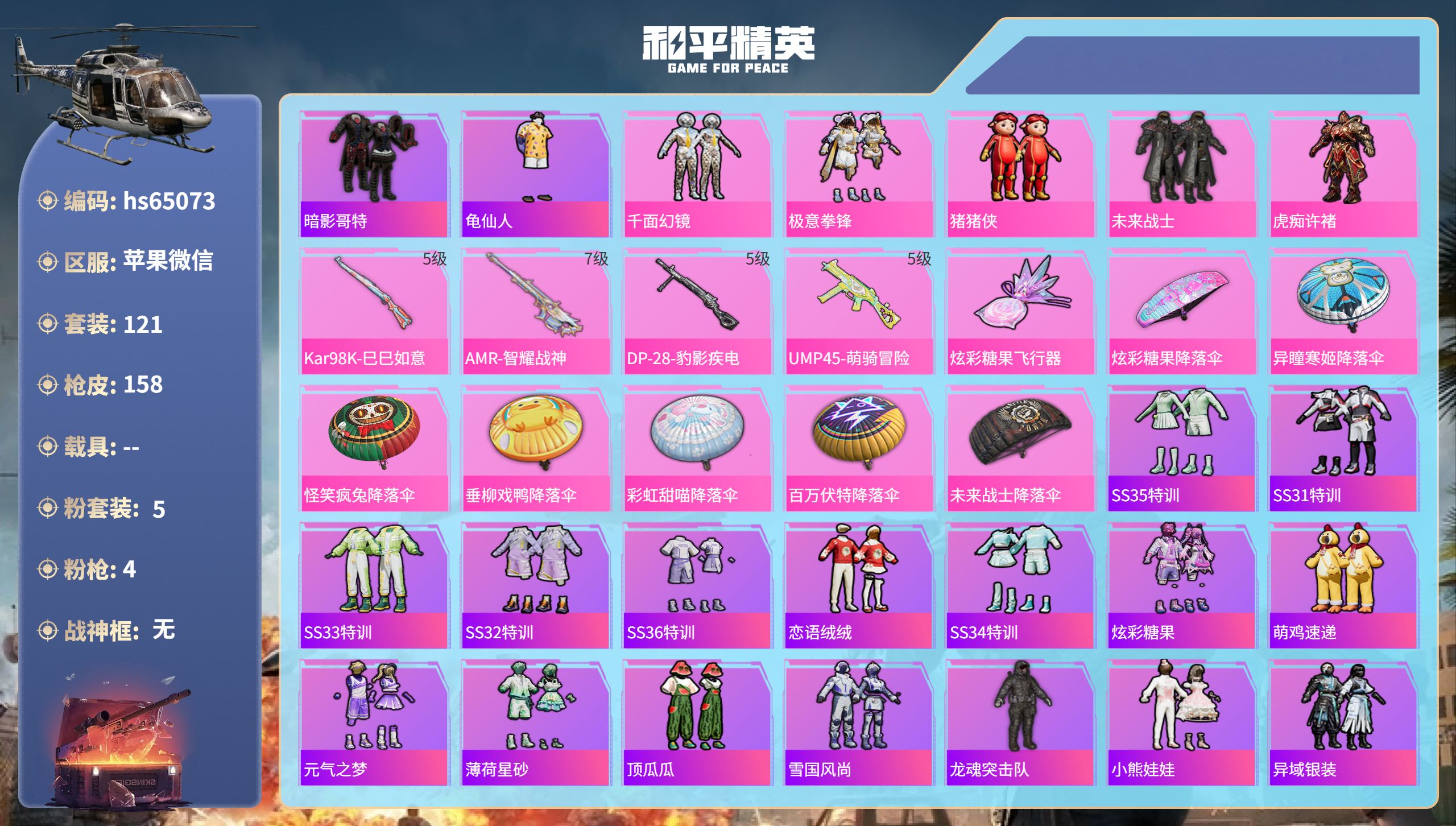 苹果微信-20王牌印记-3红装-12粉装-11特效枪-6载具-热