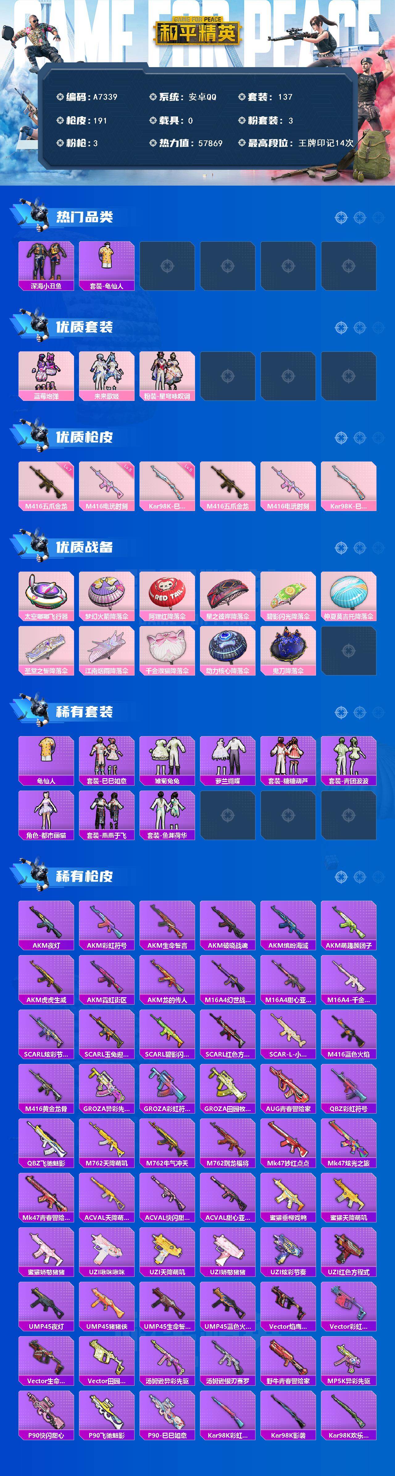 【可二次】安卓手Q-1粉装-3特效枪-118套装-172枪皮-8王牌印记-超级王