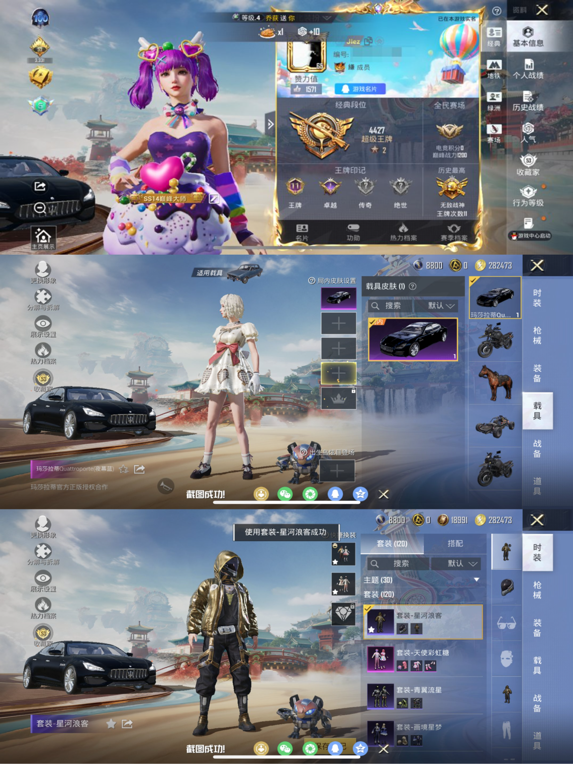 1神装-5粉装-6特效枪-69套装-114枪皮-5王牌印记-不朽星钻Ⅴ-37767热力值