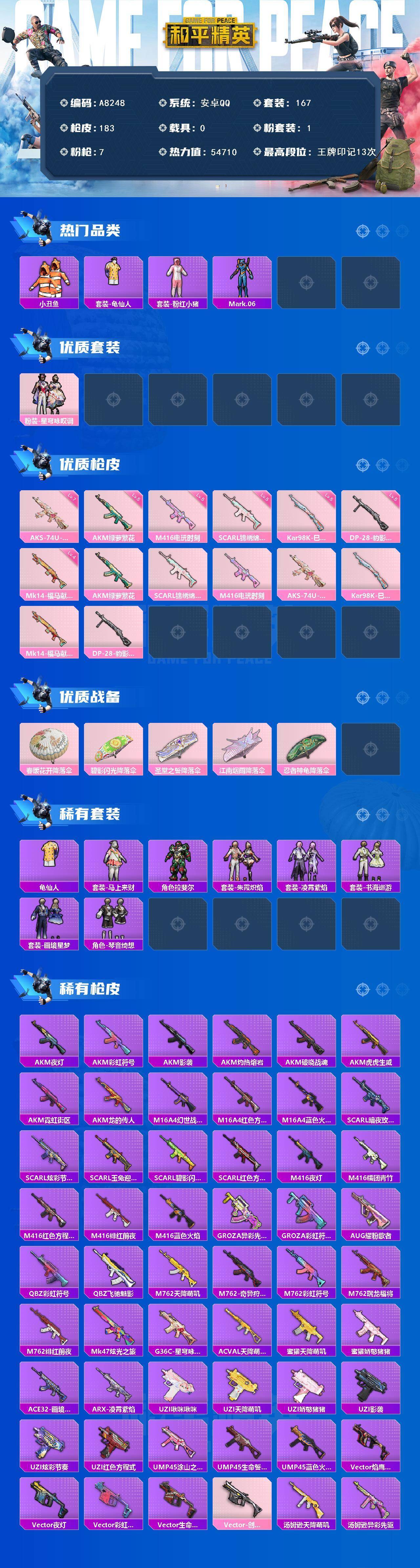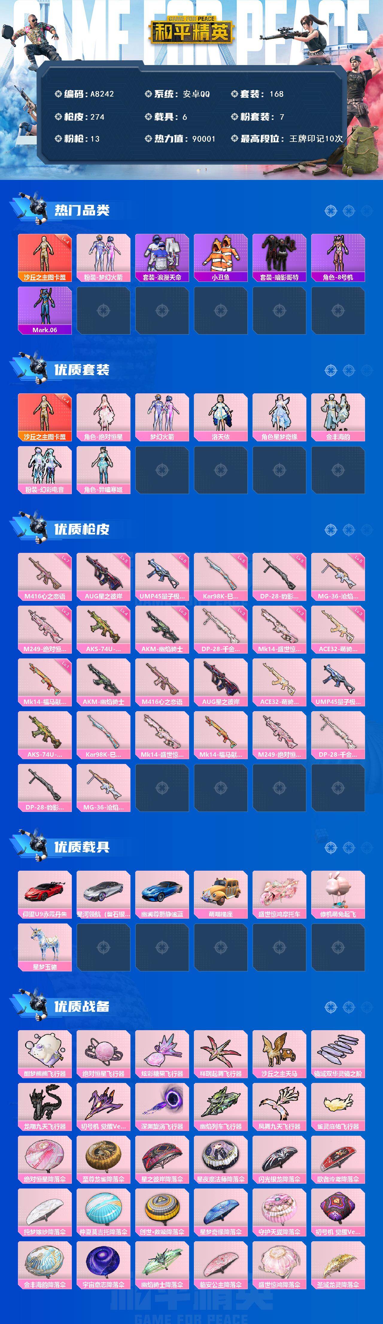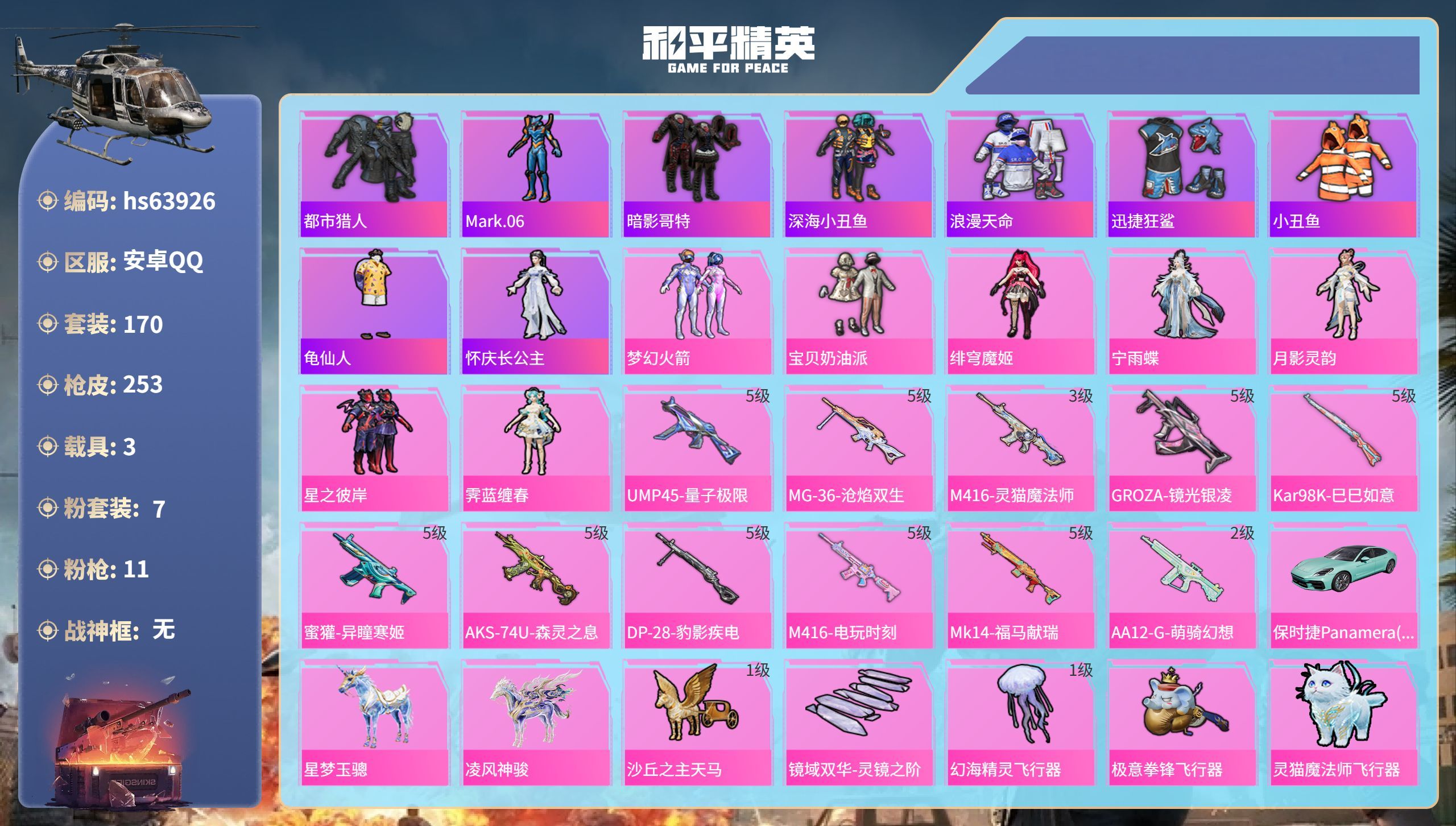 hs63926 安卓手Q-8王牌印记-7粉装-11特效枪-3载具-80969热力值-170套装-25