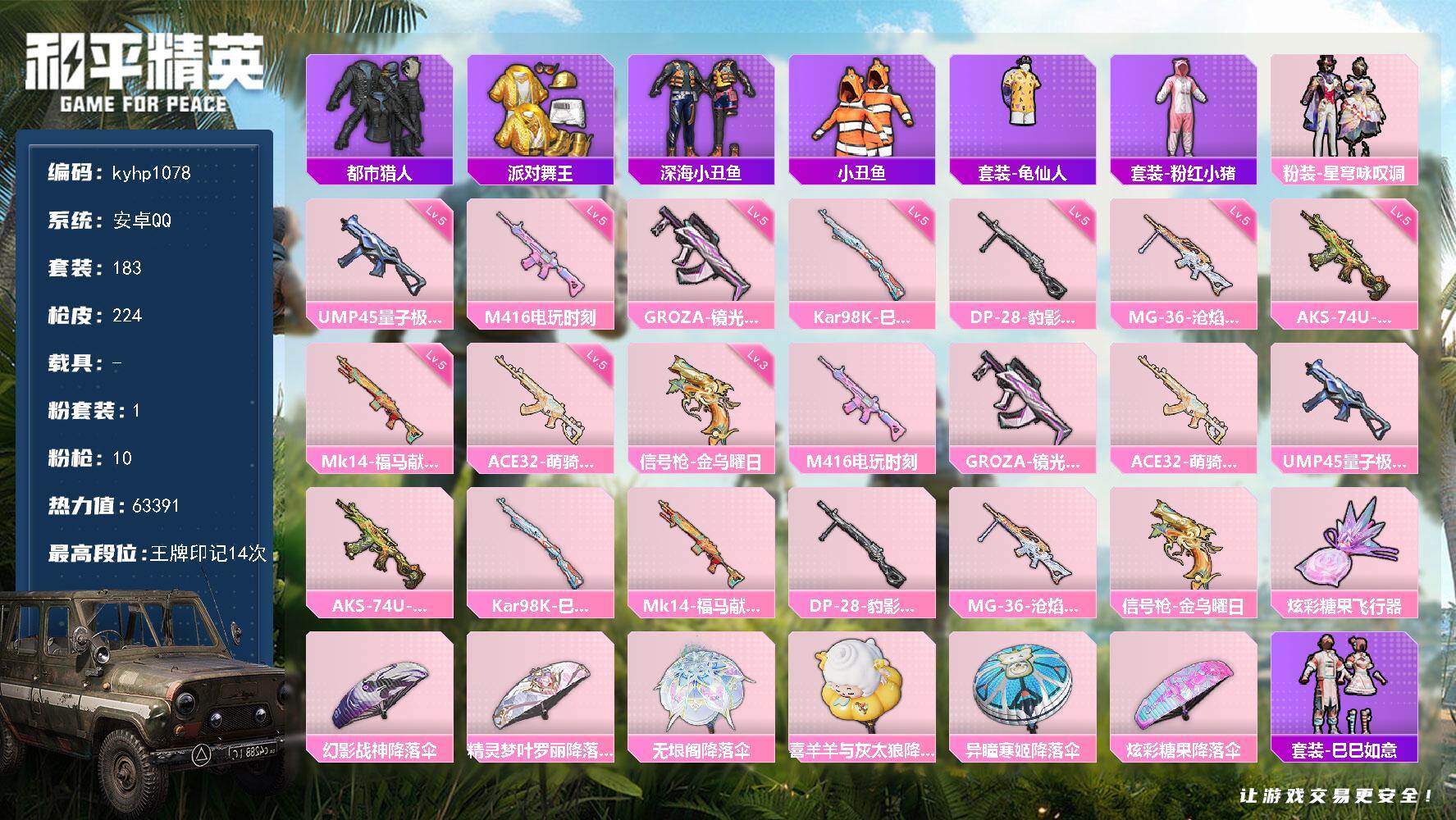 安卓手Q-13王牌印记-5粉装-15特效枪-1载具-97224热