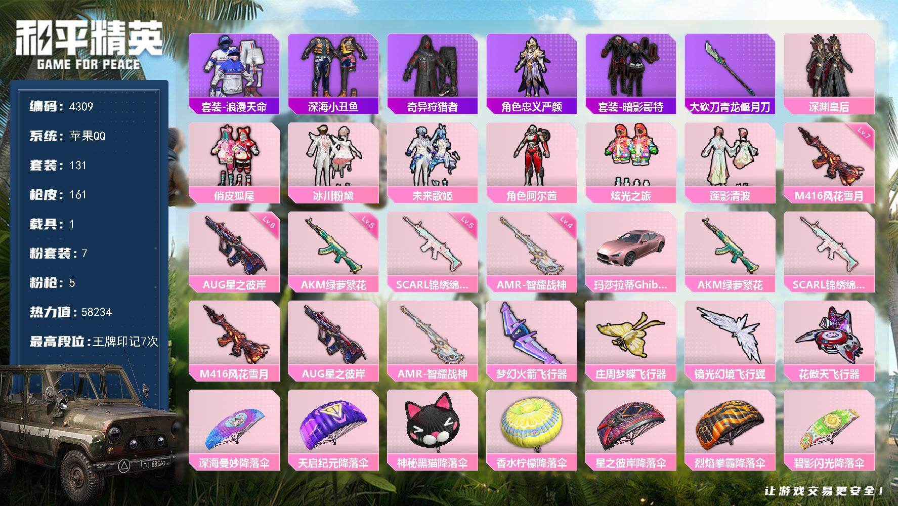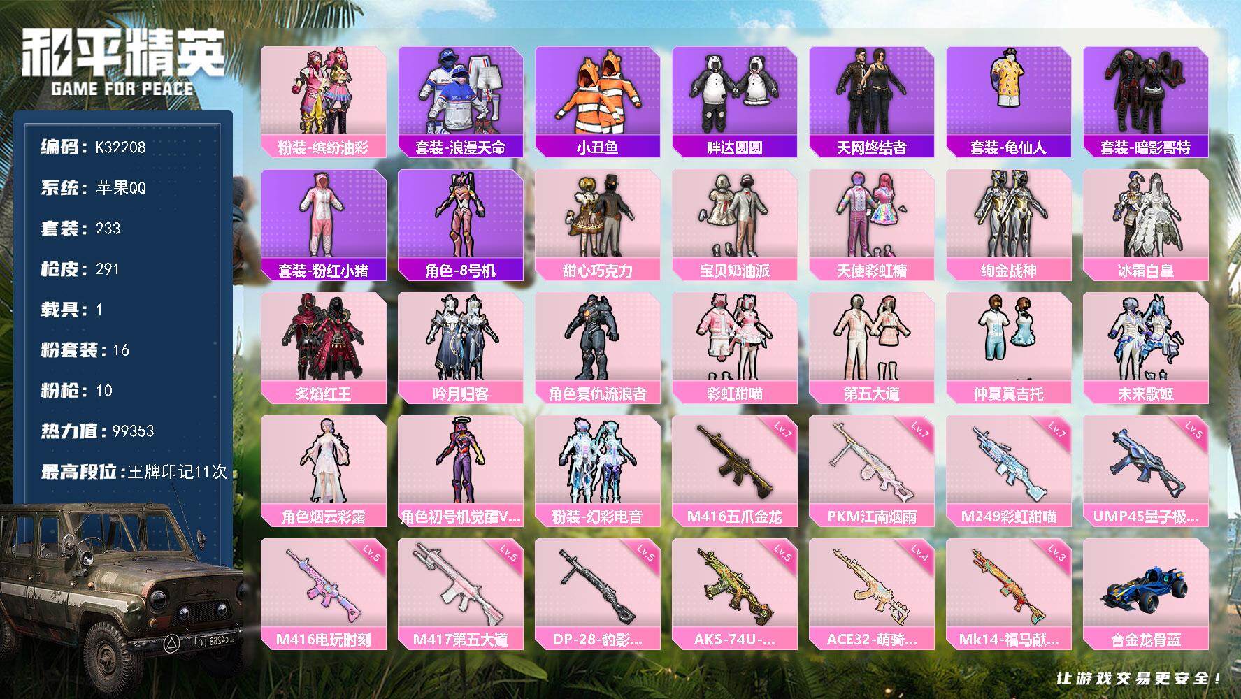 苹果手Q-16王牌印记-12粉装-9特效枪-热力值-278套装-