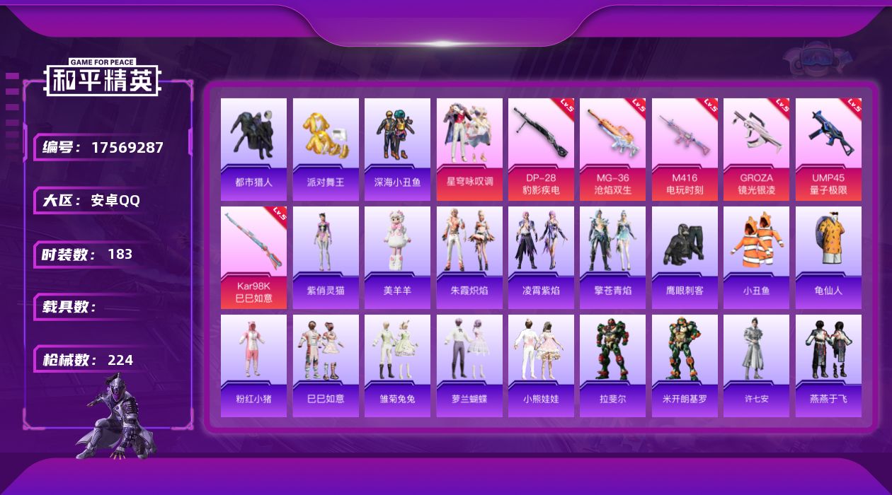安卓手Q-13王牌印记-5粉装-15特效枪-1载具-97224热