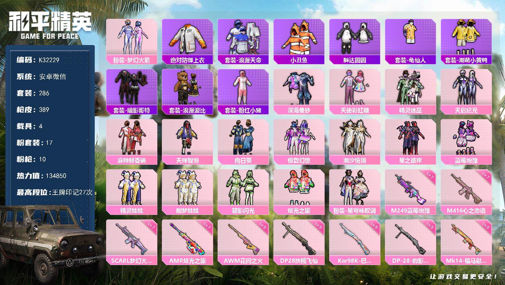 安卓 微信-17粉装-10特效枪-4载具-5粉色飞行器-134850热力值-27