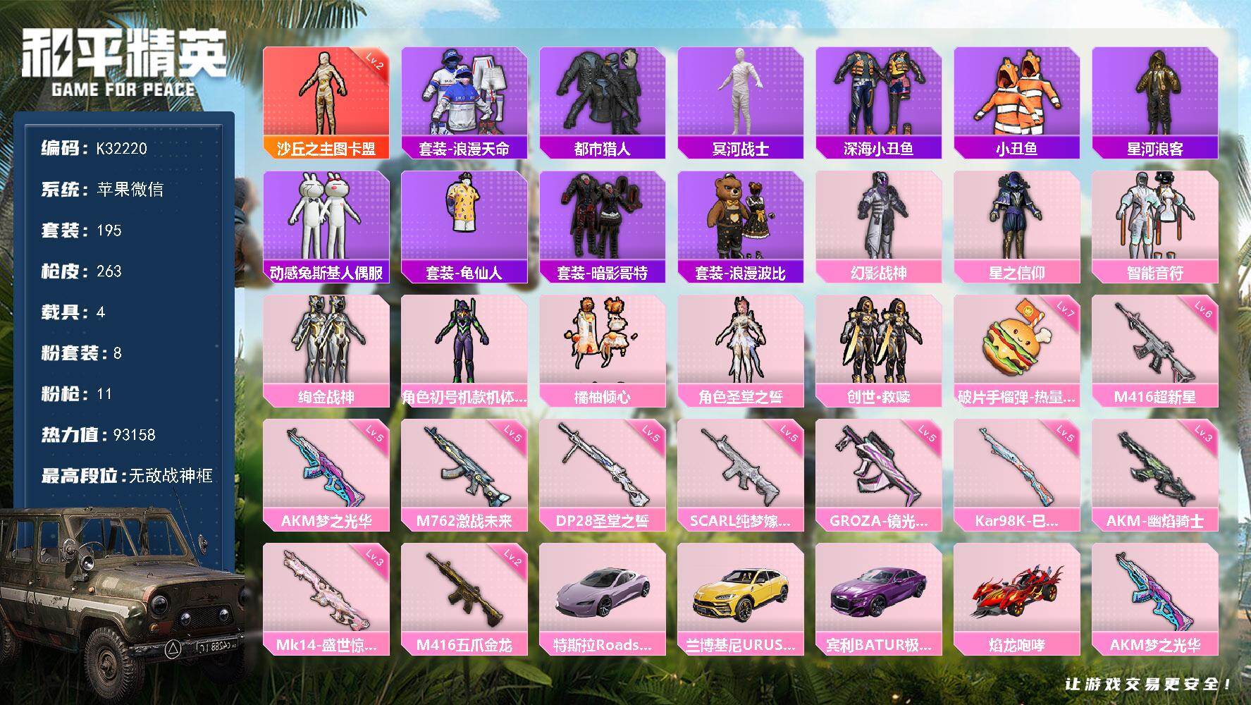 安卓 微信-14粉装-16特效枪-5载具-5粉色飞行器-102777热力值-17
