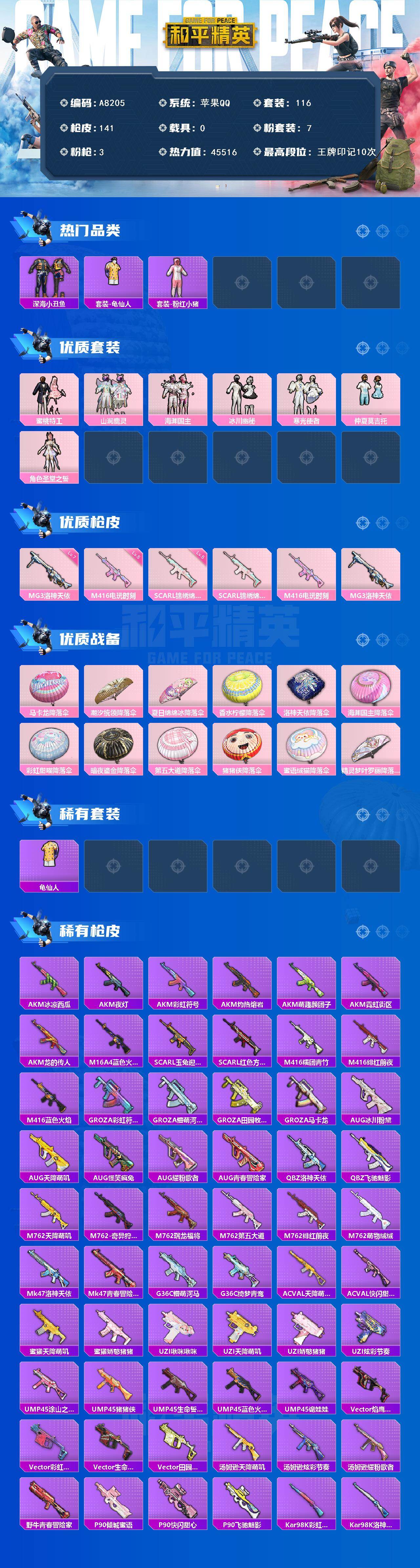 4红装7稀有7载具73粉装37特效枪61热门473套装562枪皮 25印记 历史超级王牌21星