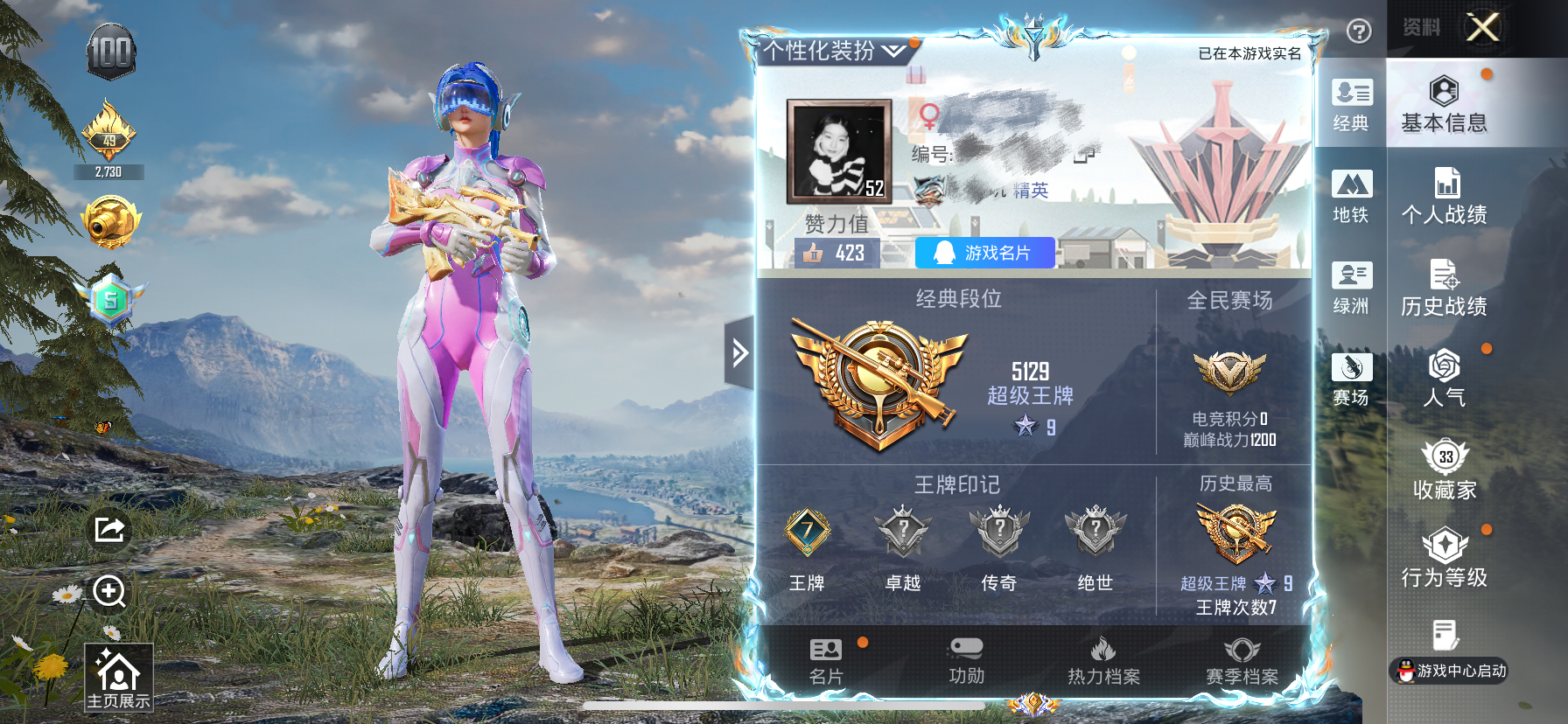 1神装-7粉装-7特效枪-4载具-5粉色飞行器-79709热力值-18王牌印记-162套装-239枪皮