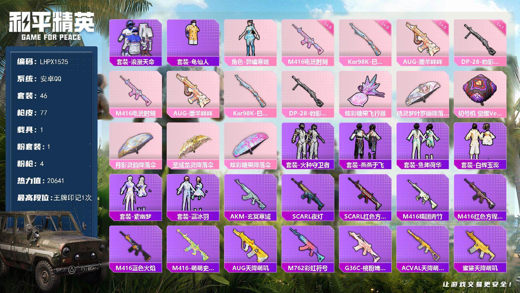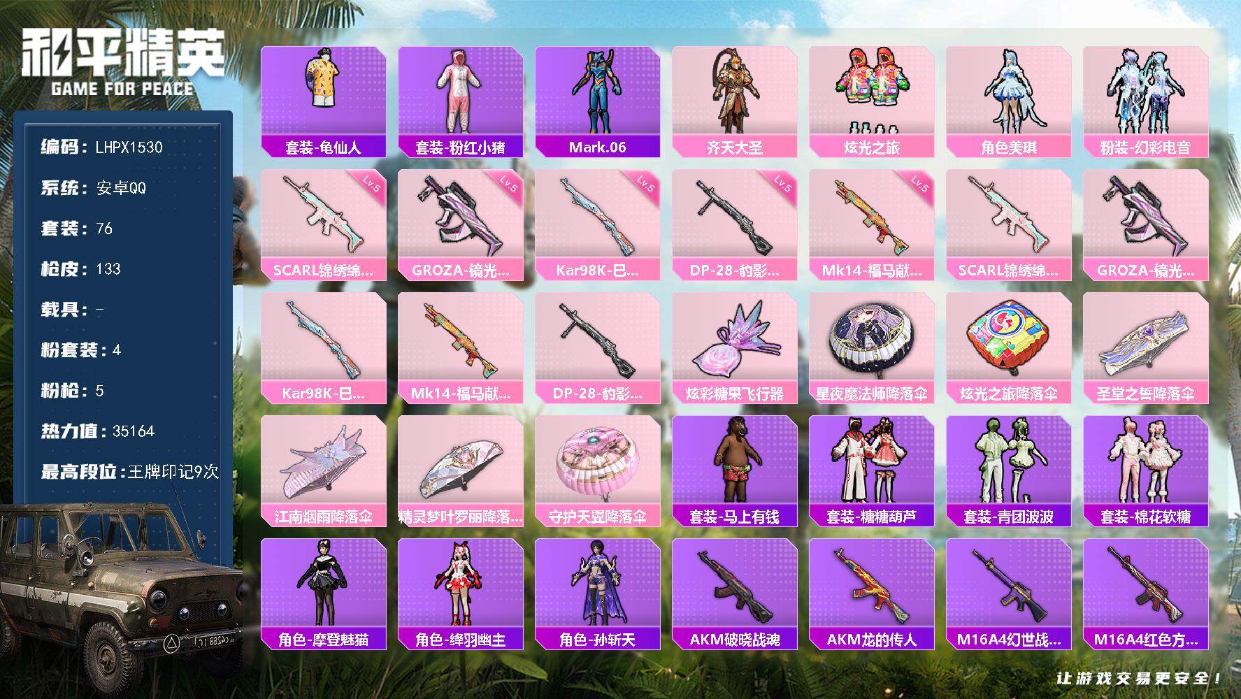 【店主推荐捡漏号!可直接换绑】安卓 手Q-35粉装-9特效枪-3载具-9粉色飞