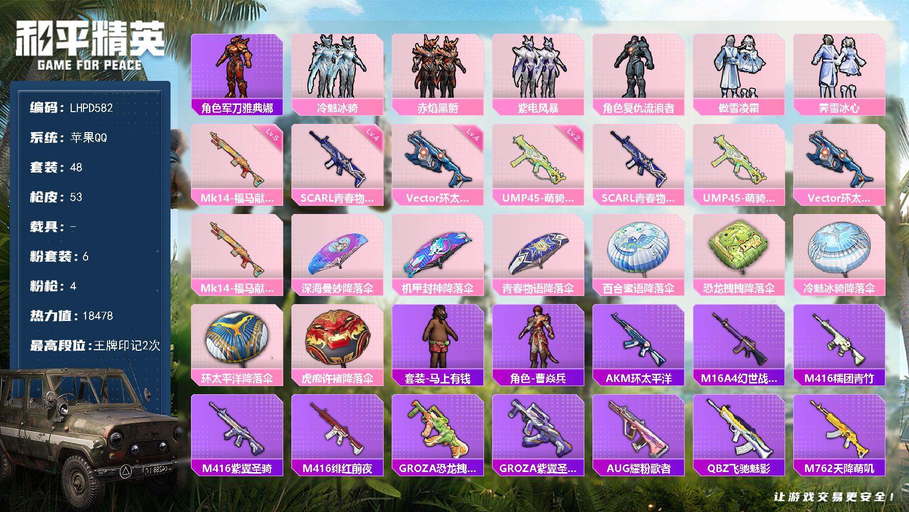 苹果手Q-2载具-2粉装-4特效枪-79套装-140枪皮-4王牌印记-超级王牌3