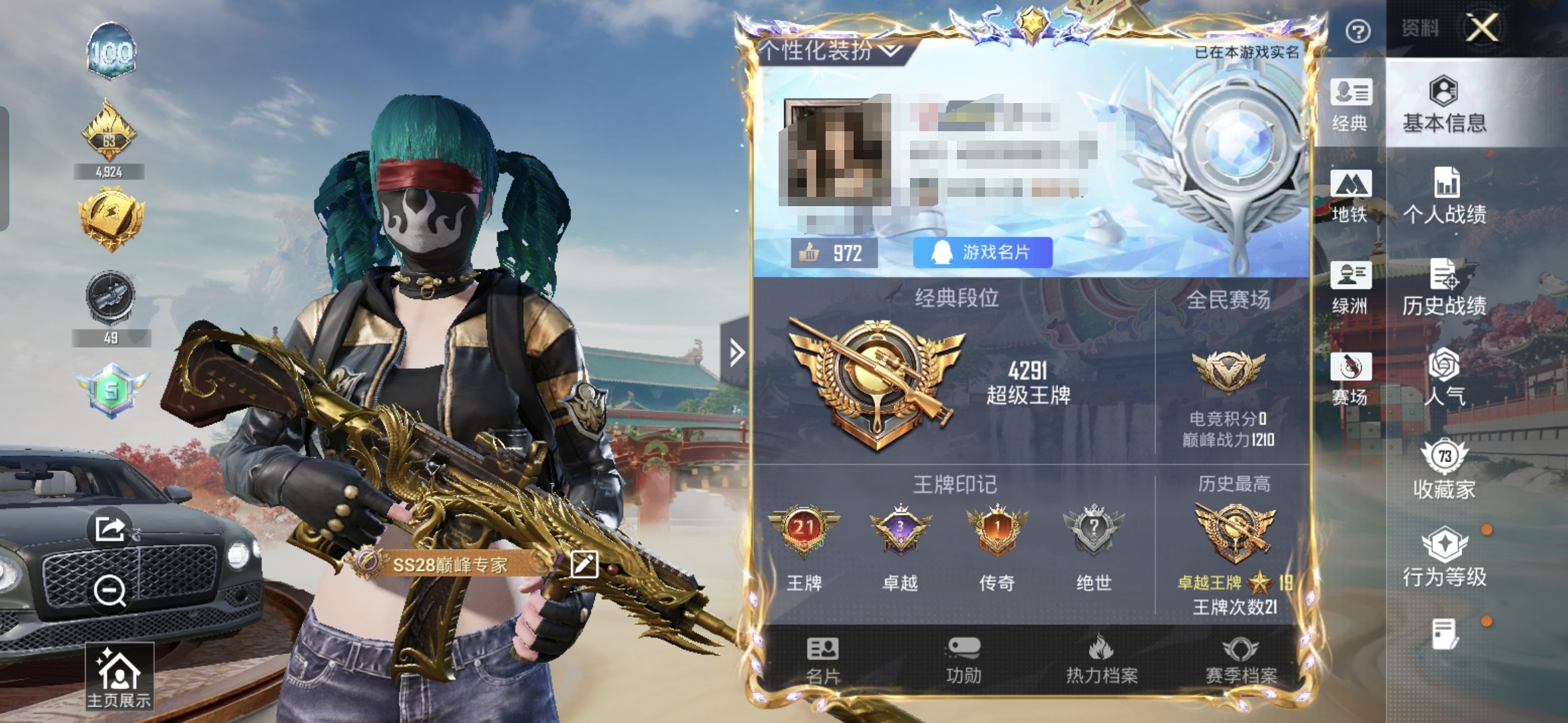 1载具-7粉装-10特效枪-196套装-294枪皮-21王牌印记-超级王牌-86400热力值