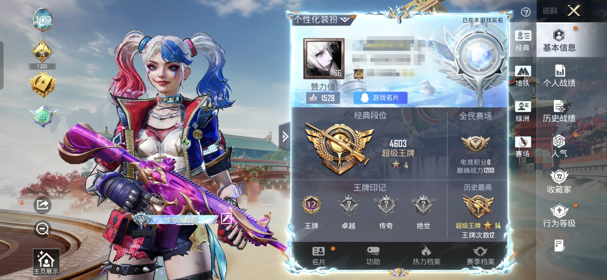 15粉装-10特效枪-187套装-211枪皮-12王牌印记-超级王牌4星-75047热力值